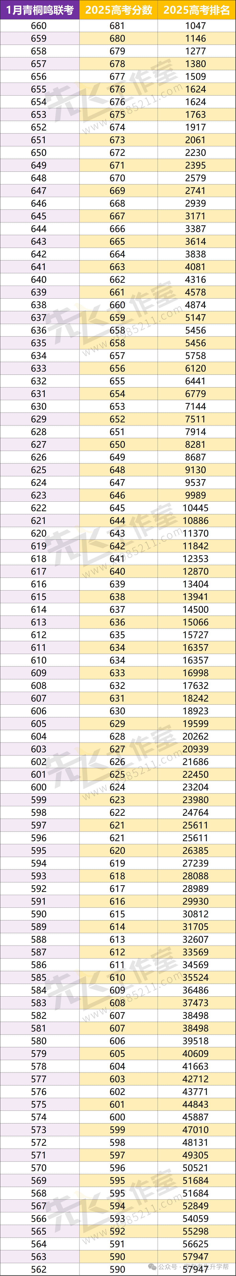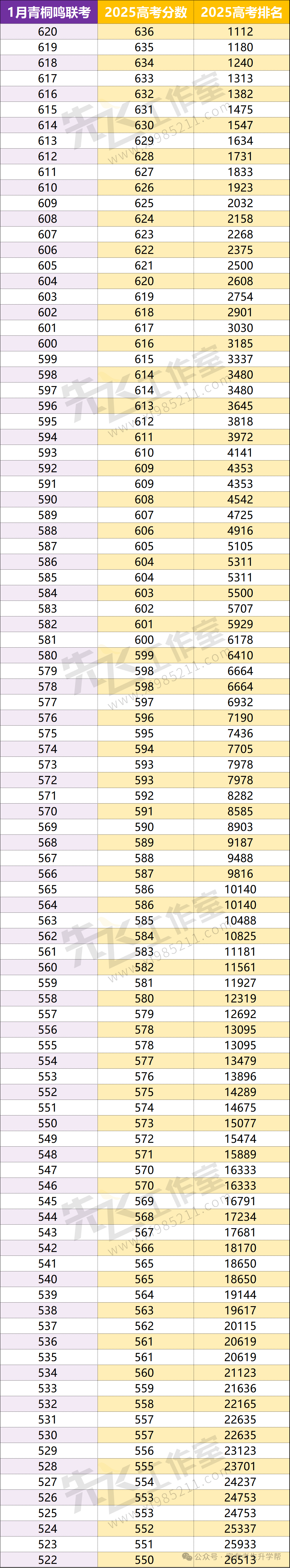 二、2026年1月河南青桐鸣联考分数排名表