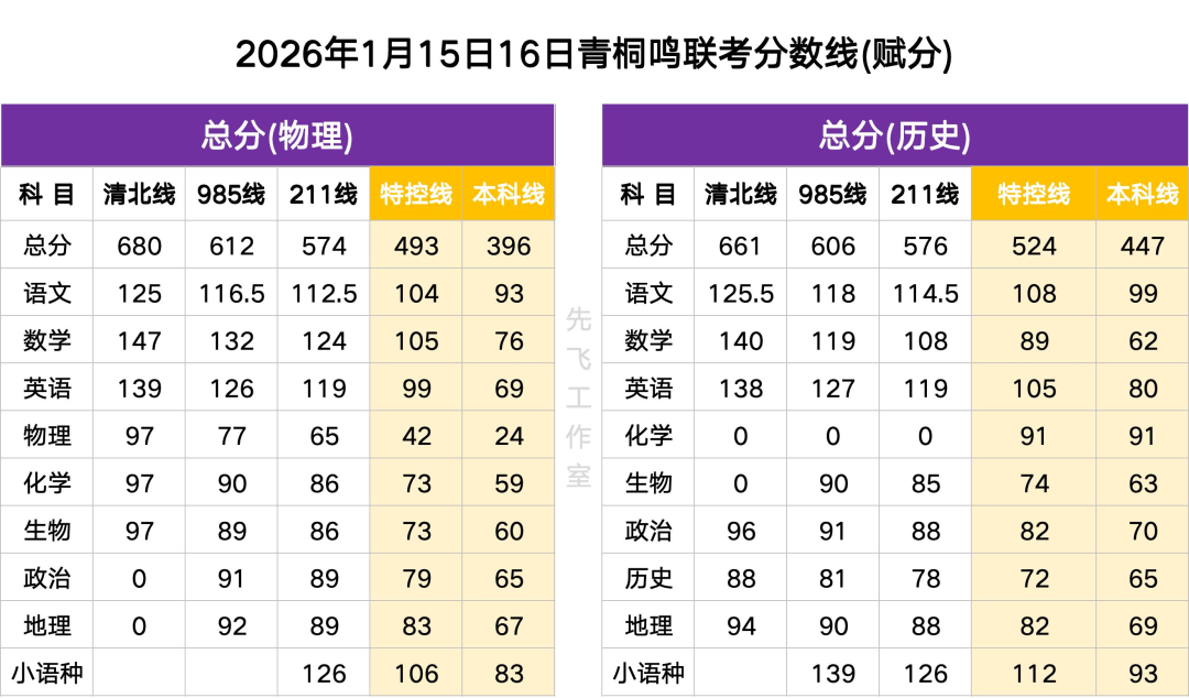 2026年1月河南青桐鸣大联考高三1月联考分数线正式出炉!物理类清北线680分(赋分)、985线612分、211线574分、特控线493分、本科线396分;历史类清北线661分、985线606分、211线576分、特控线524分、本科线447分。