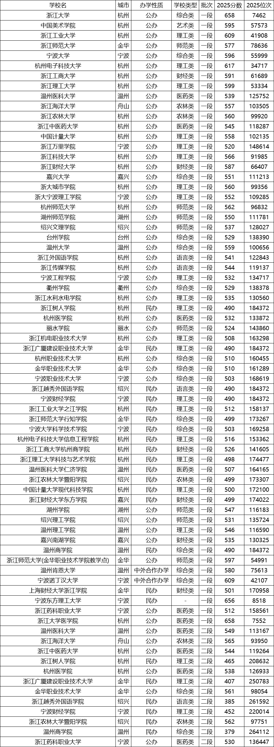 浙江2025年本科批投档数据已正式发布!其中,杭州师范大学最低562分,宁波大学最低596分。