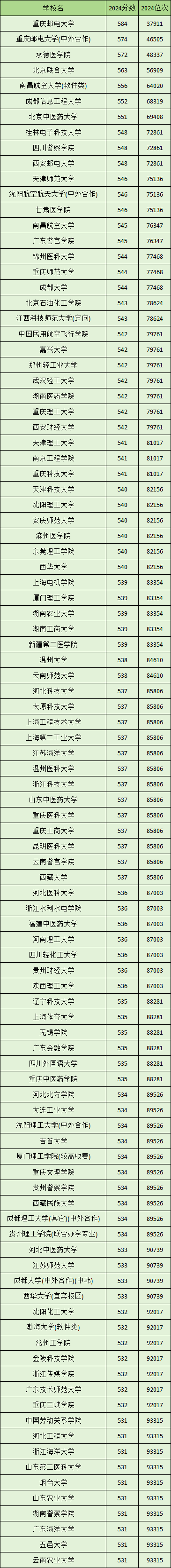 2024年全国部分公办二本大学录取分数线排名一览表如下: