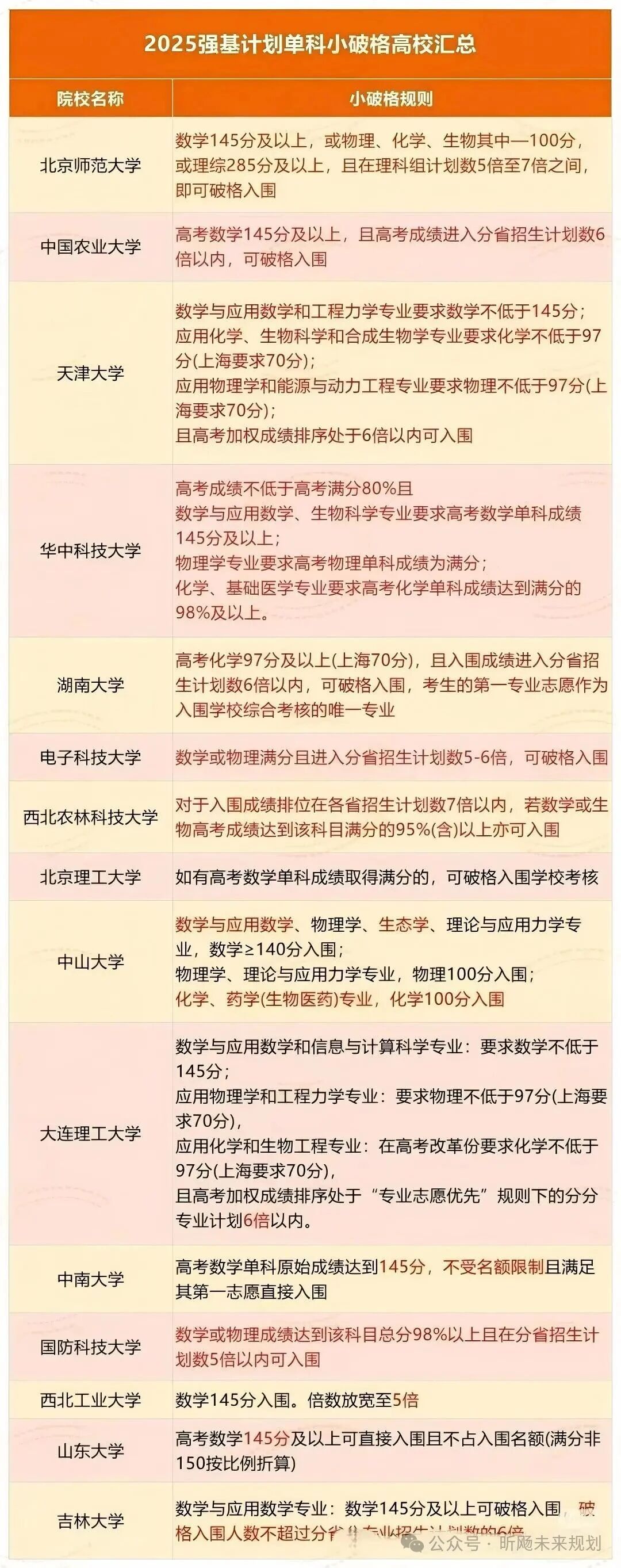 规则:高考单科成绩达到特定标准(如数学145分及以上、物理满分、化学140分及以上),即使总分没达到裸分入围线,也能破格入围。这种规则专门针对“偏科但单科极强”的考生(比如数学天才但语文不及格)。
