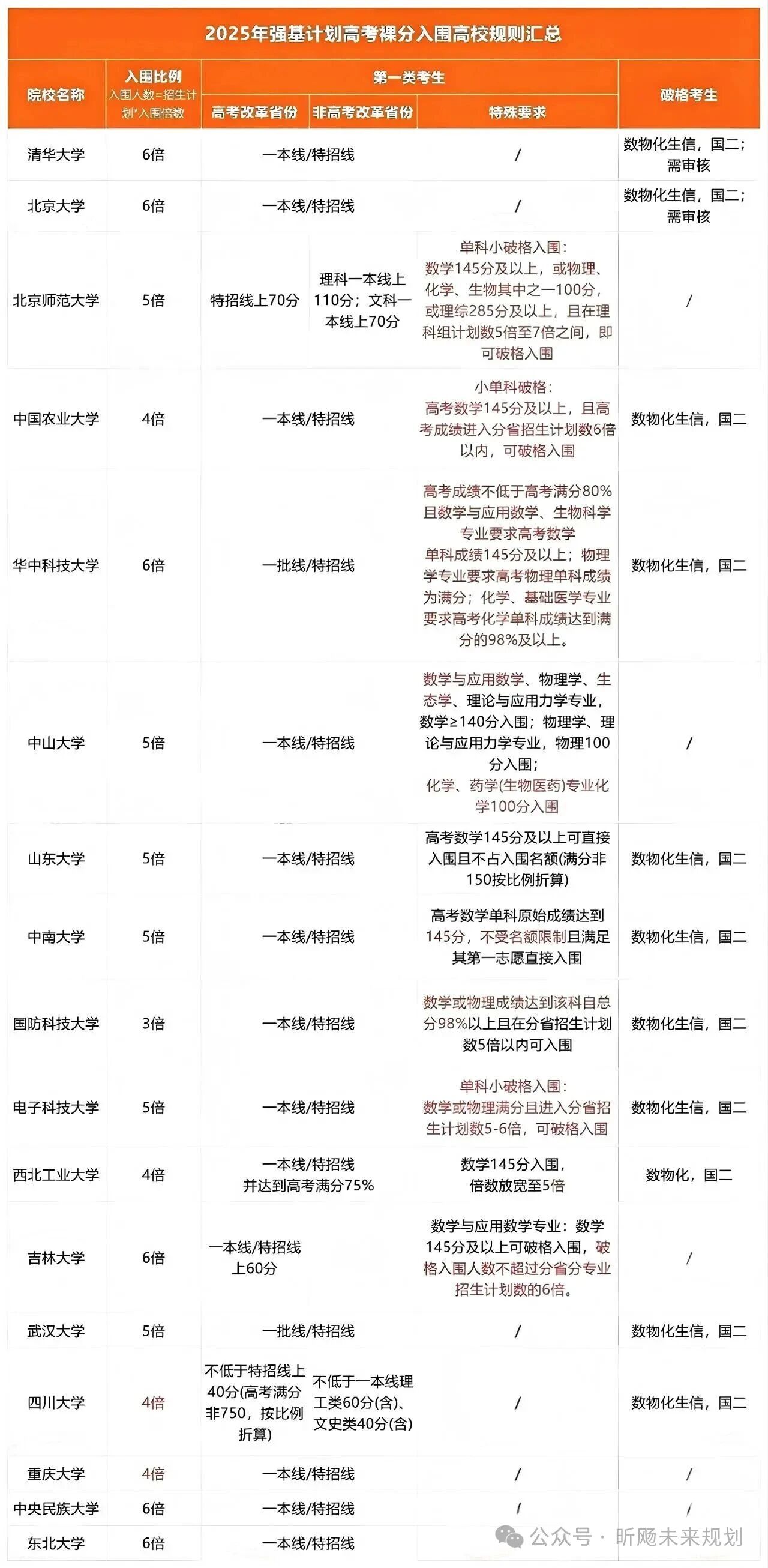 例子:某省清华强基计划招10人,入围倍数5倍,就是全省前50名的理科考生能入围——哪怕你数学满分但语文不及格,只要总分够就能进。