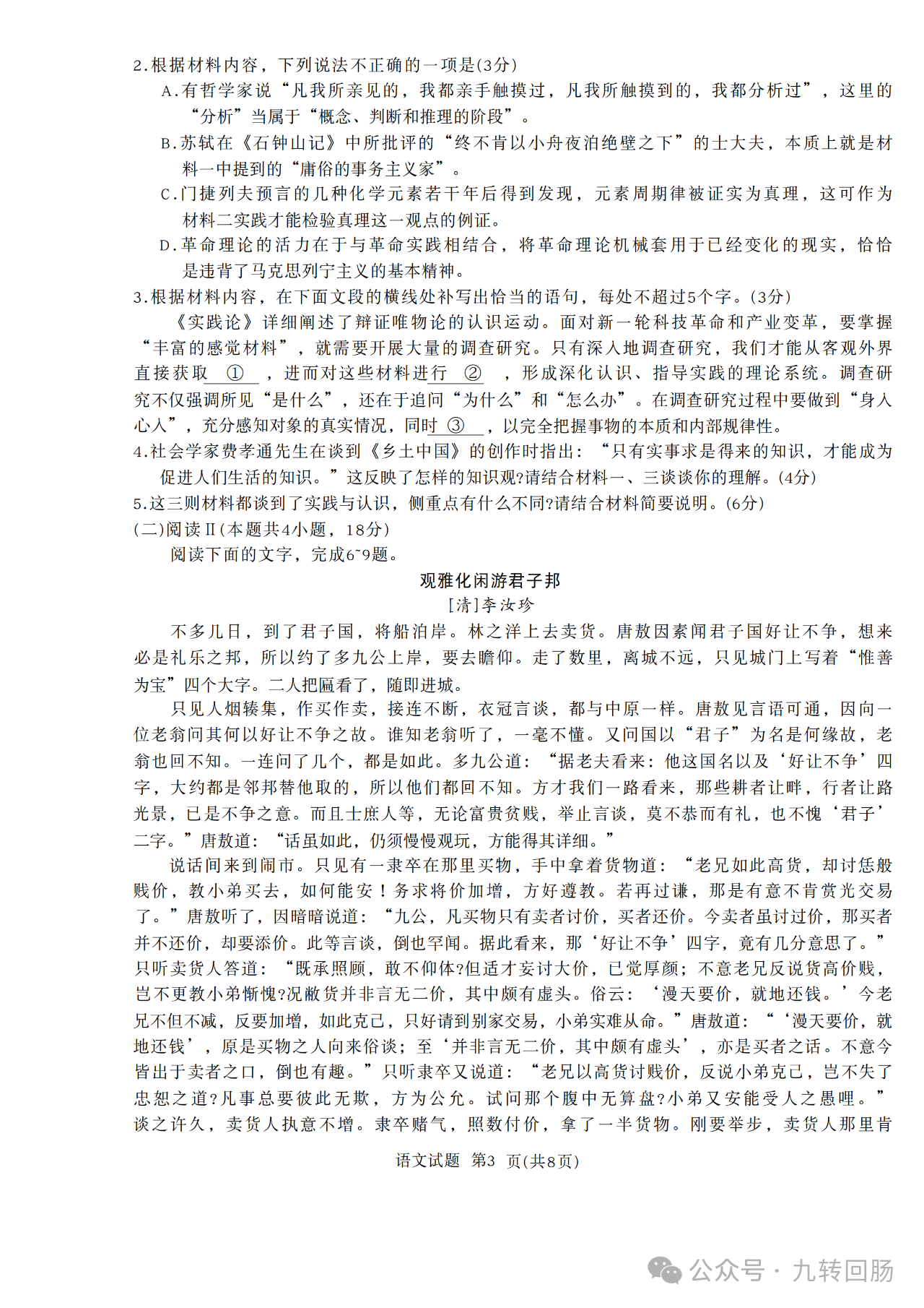 思想政治试卷解析: