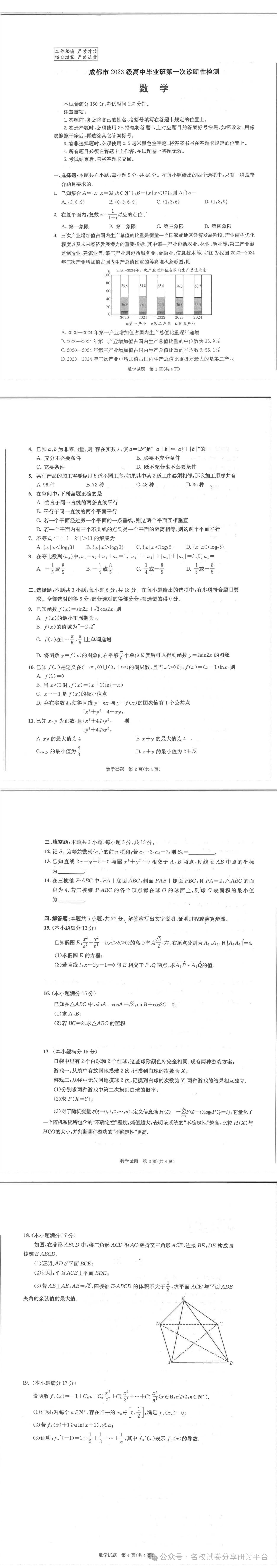 二、2026届四川成都一诊数学试卷答案及试卷解析
