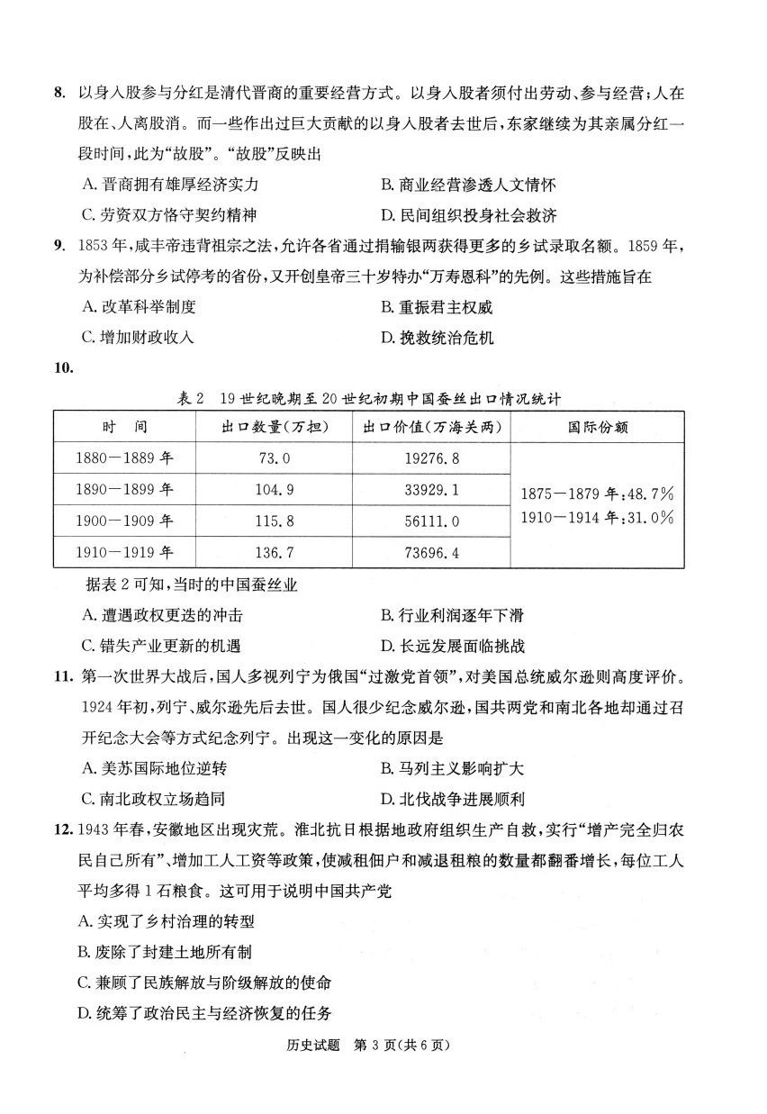 历史试卷解析: