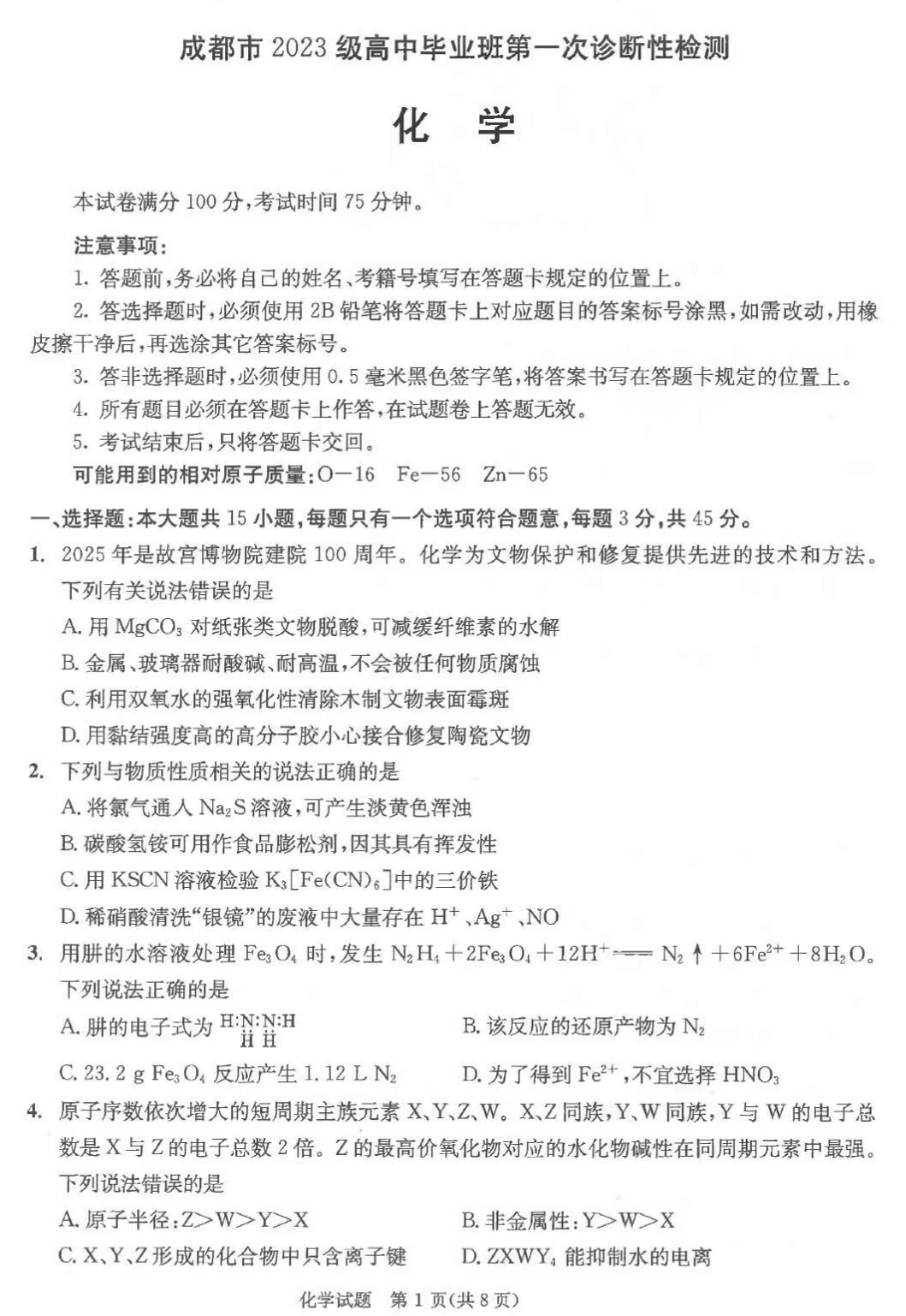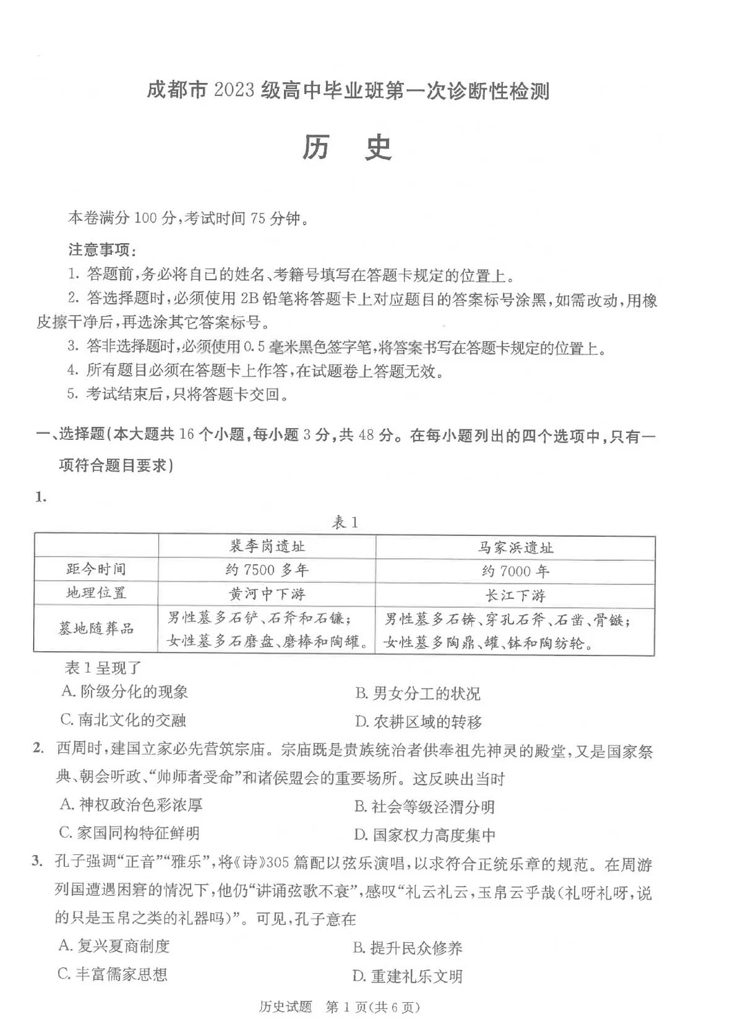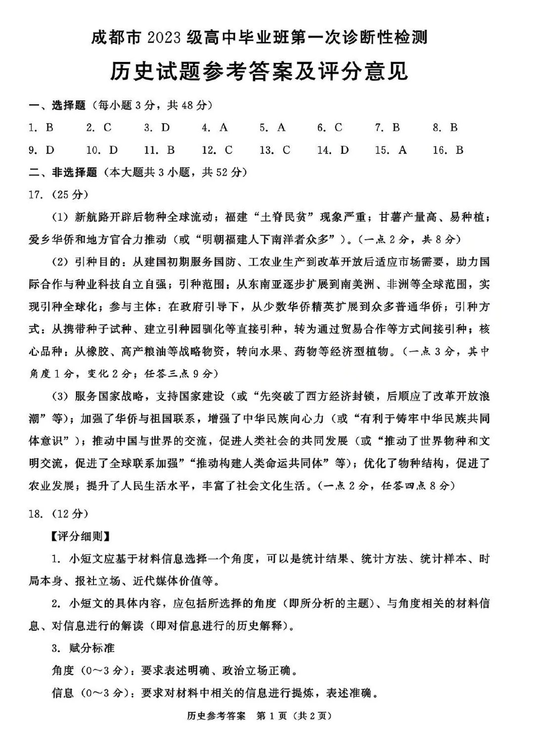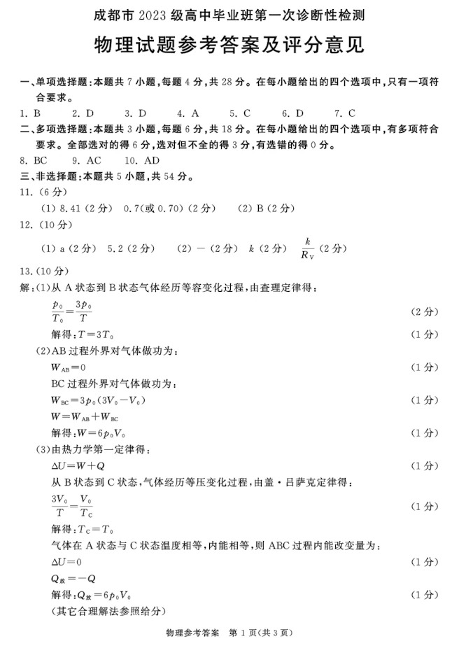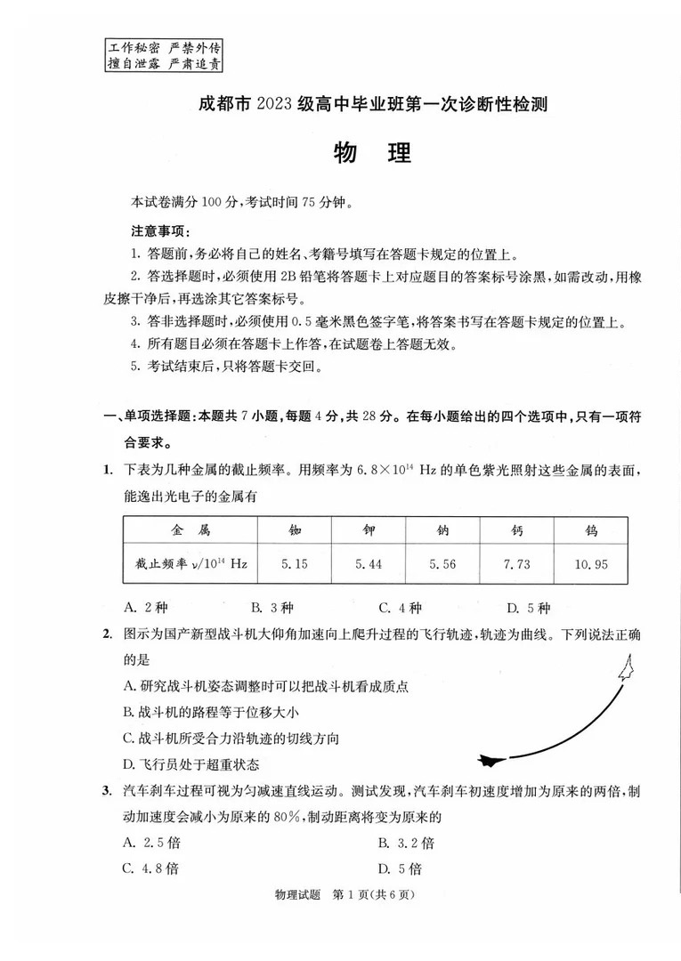 三、2026届四川成都一诊物理/历史试卷答案及试卷解析