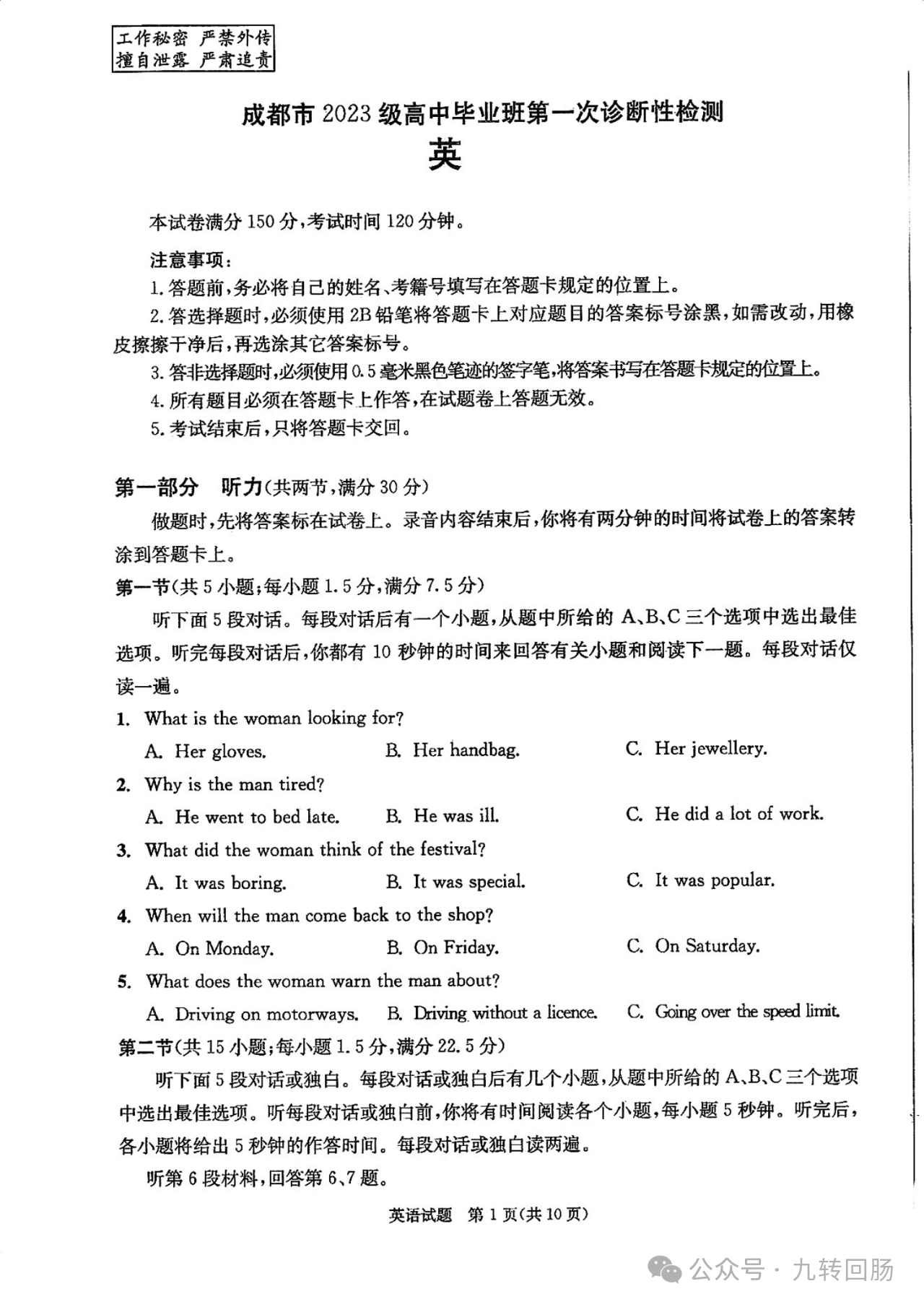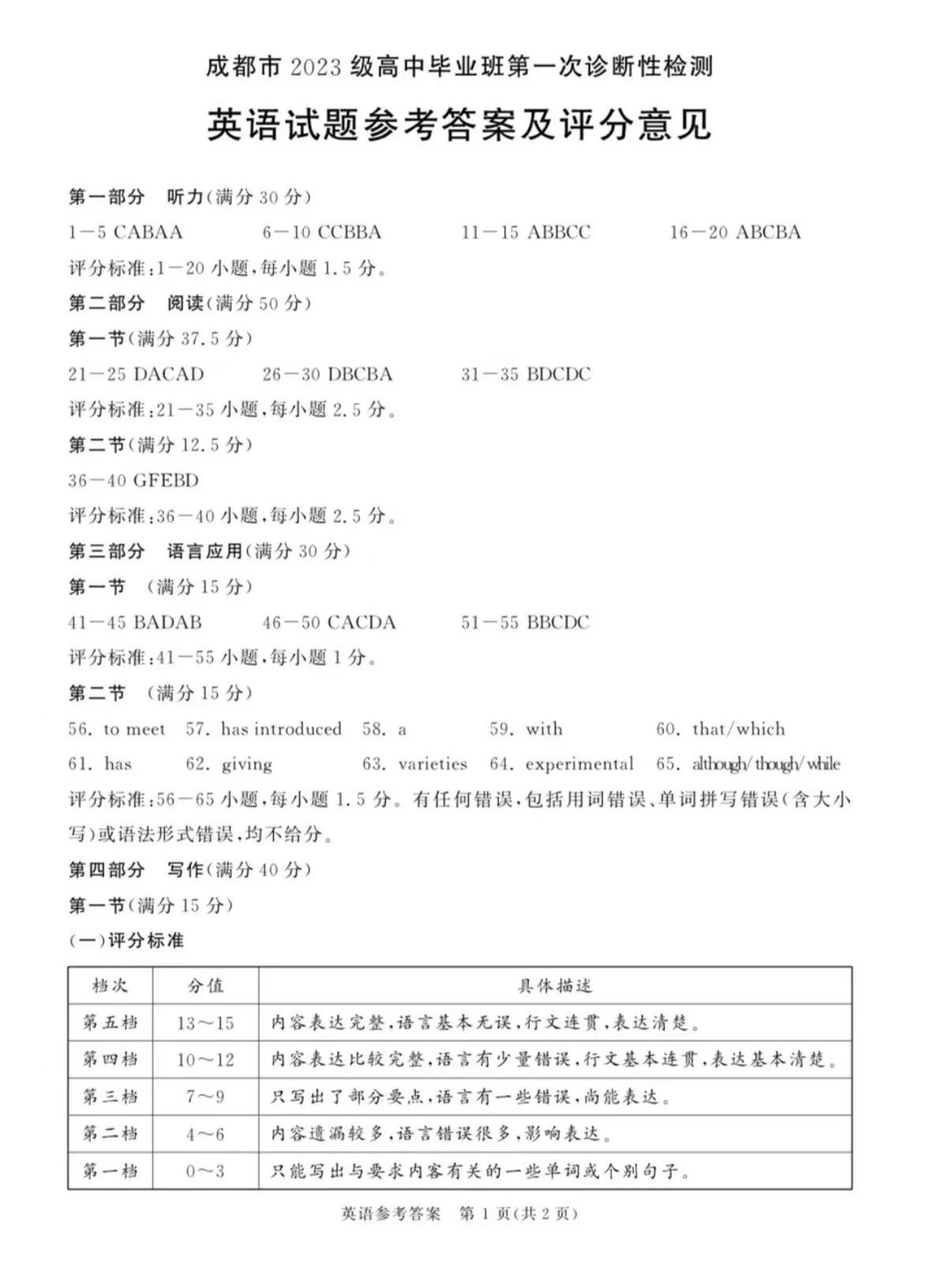 四、2026届四川成都一诊英语试卷答案及试卷解析