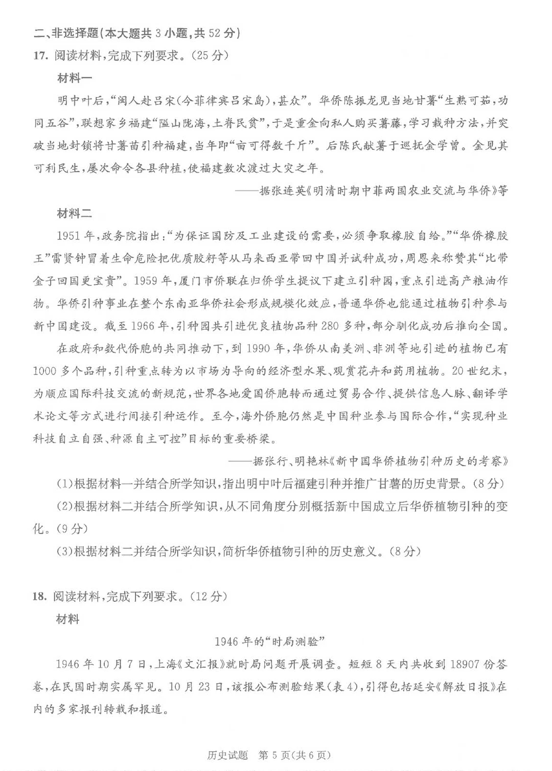 历史试卷紧扣新课标要求,涵盖中国古代史、中国近现代史以及世界史相关内容。材料分析题比重较大,要求考生在理解史实的基础上进行归纳概括和逻辑分析,注重历史解释能力和多角度思考能力。