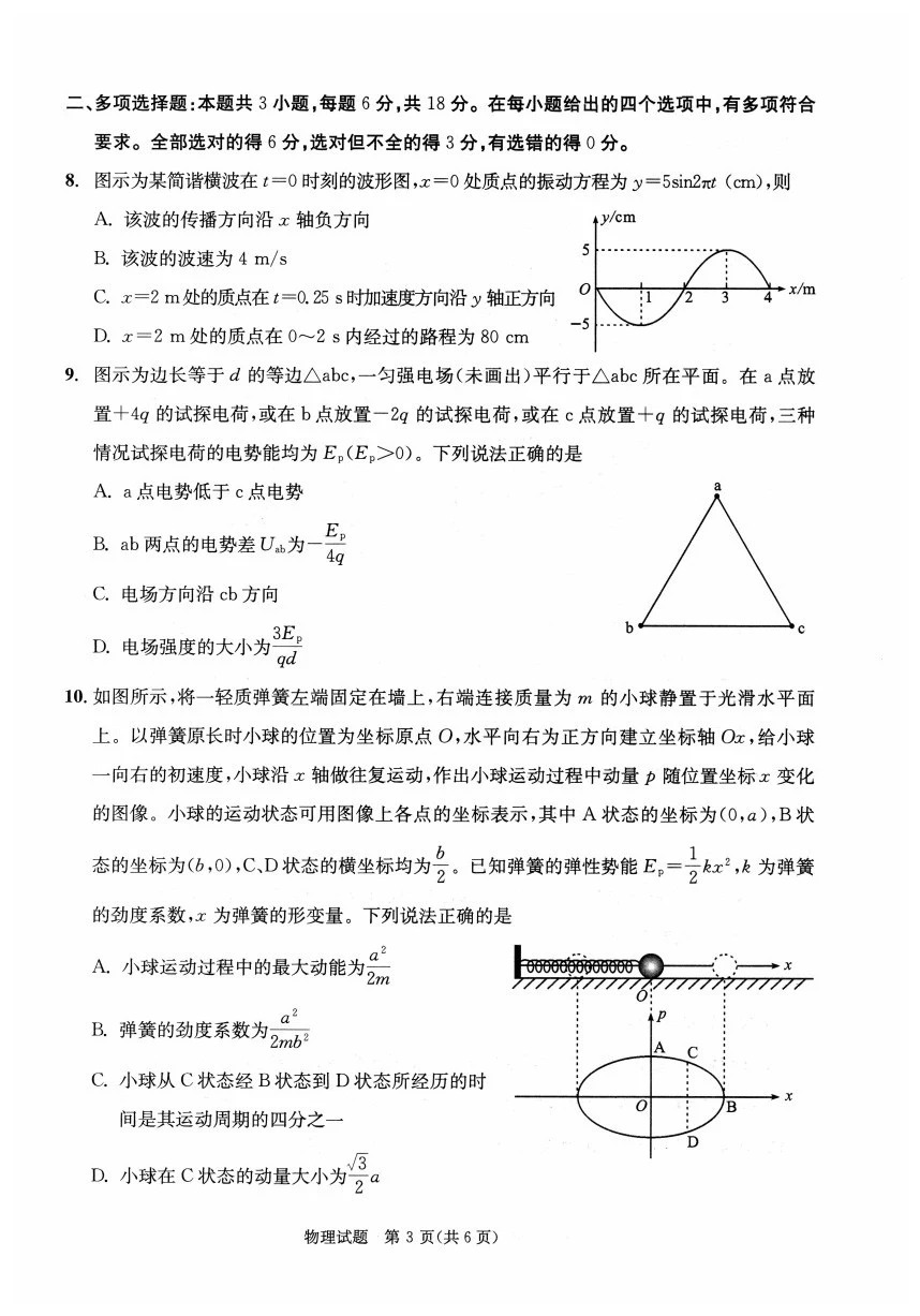 物理试卷难度整体适中,重点考查力学、电磁学等核心内容。题目强调对物理概念的理解与实际情境中的应用,部分综合题对建模能力和计算能力要求较高,体现了新高考对物理学科“理解+应用”的考查方向。