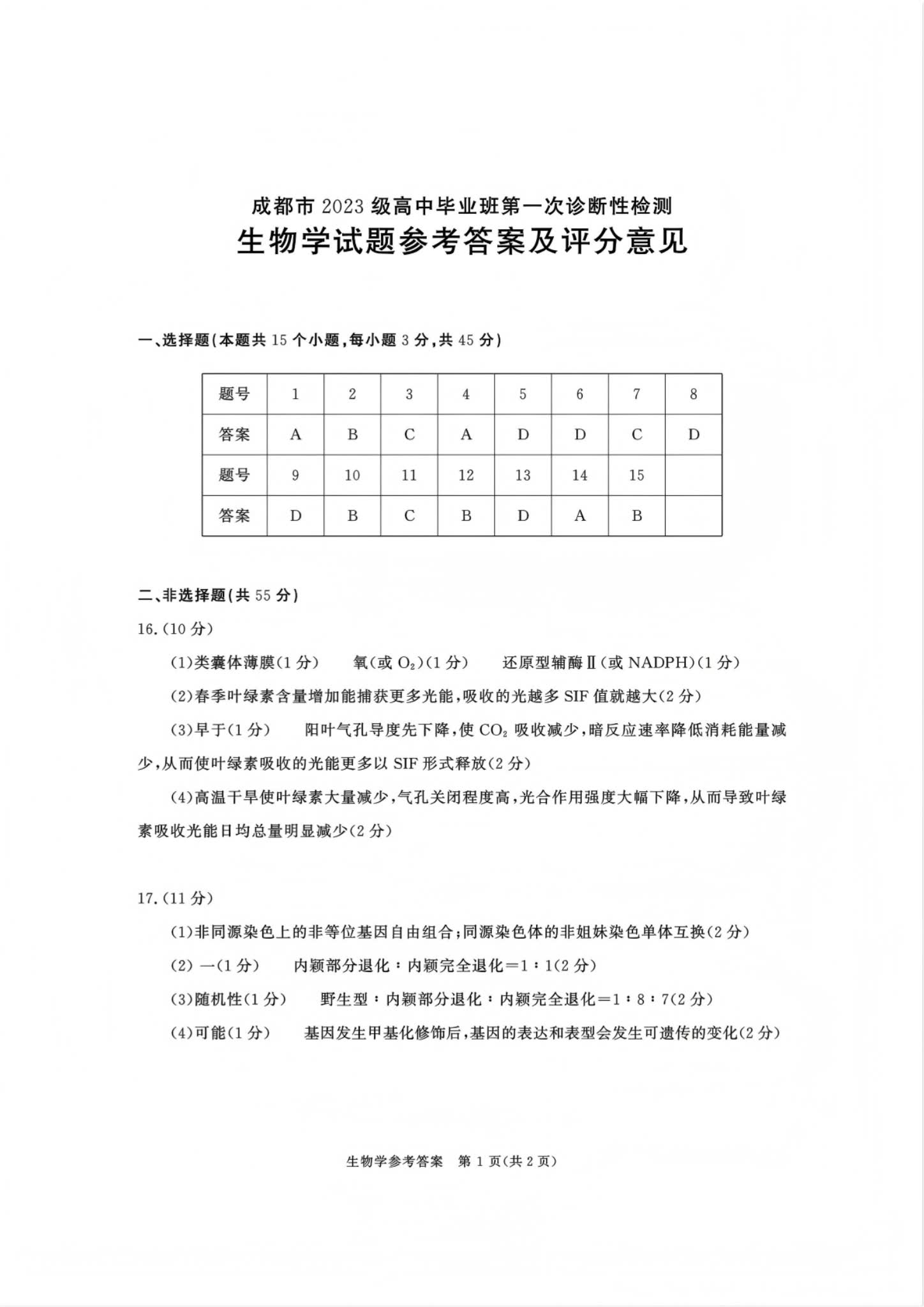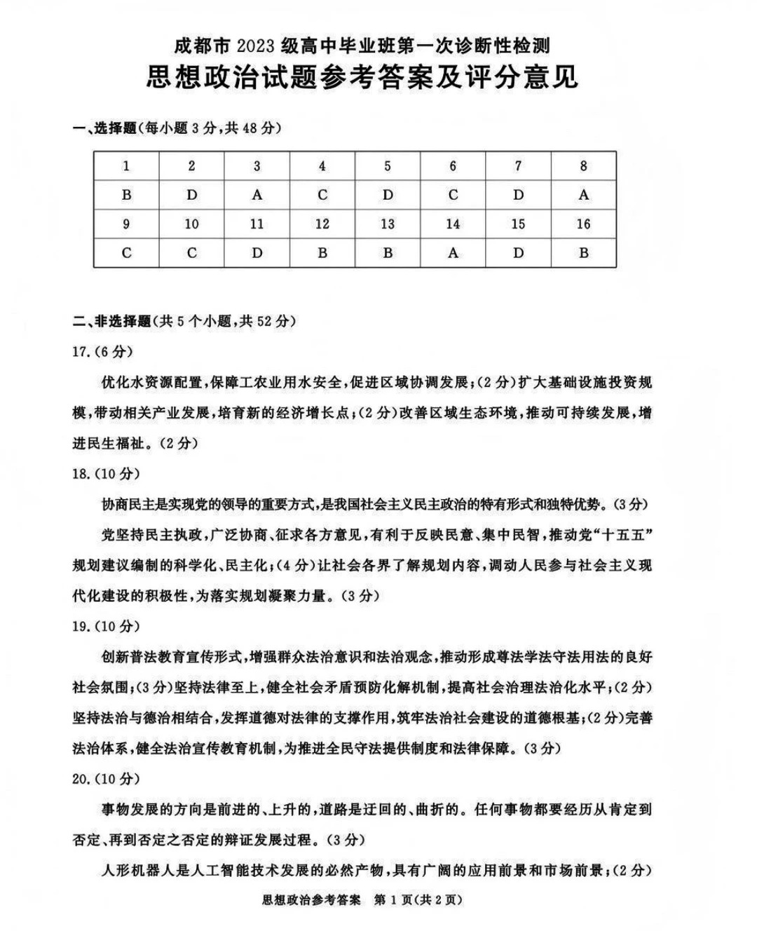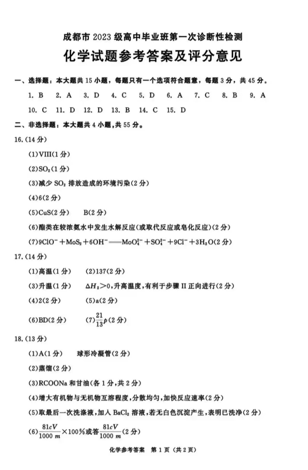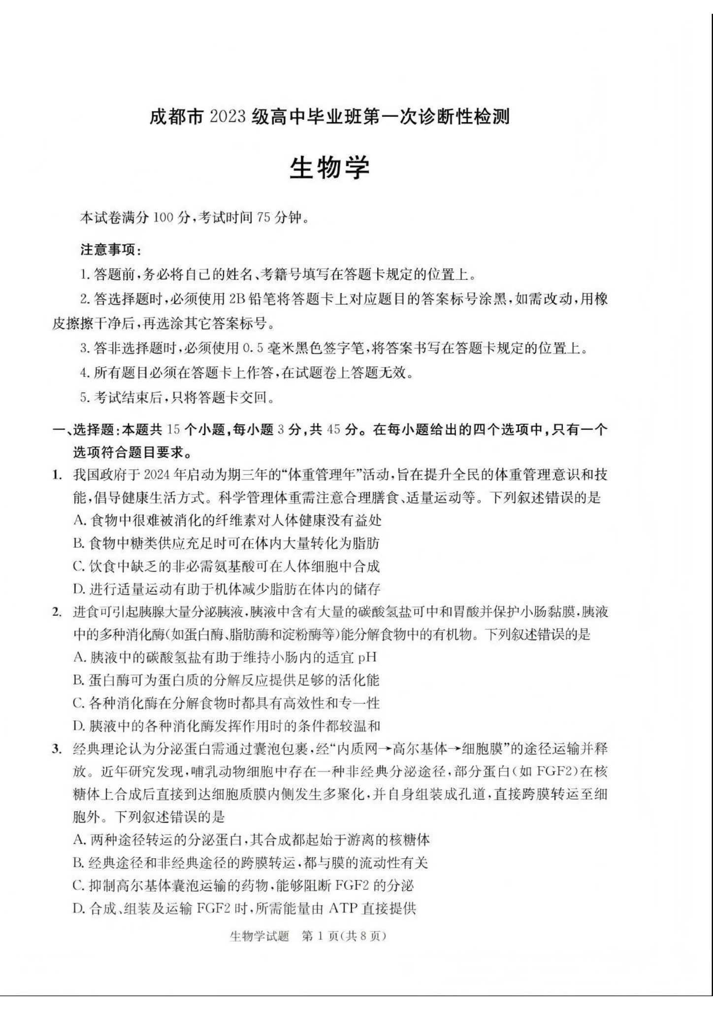 五、2026届四川成都一诊化学/地理/思想政治/生物试卷答案及试卷解析