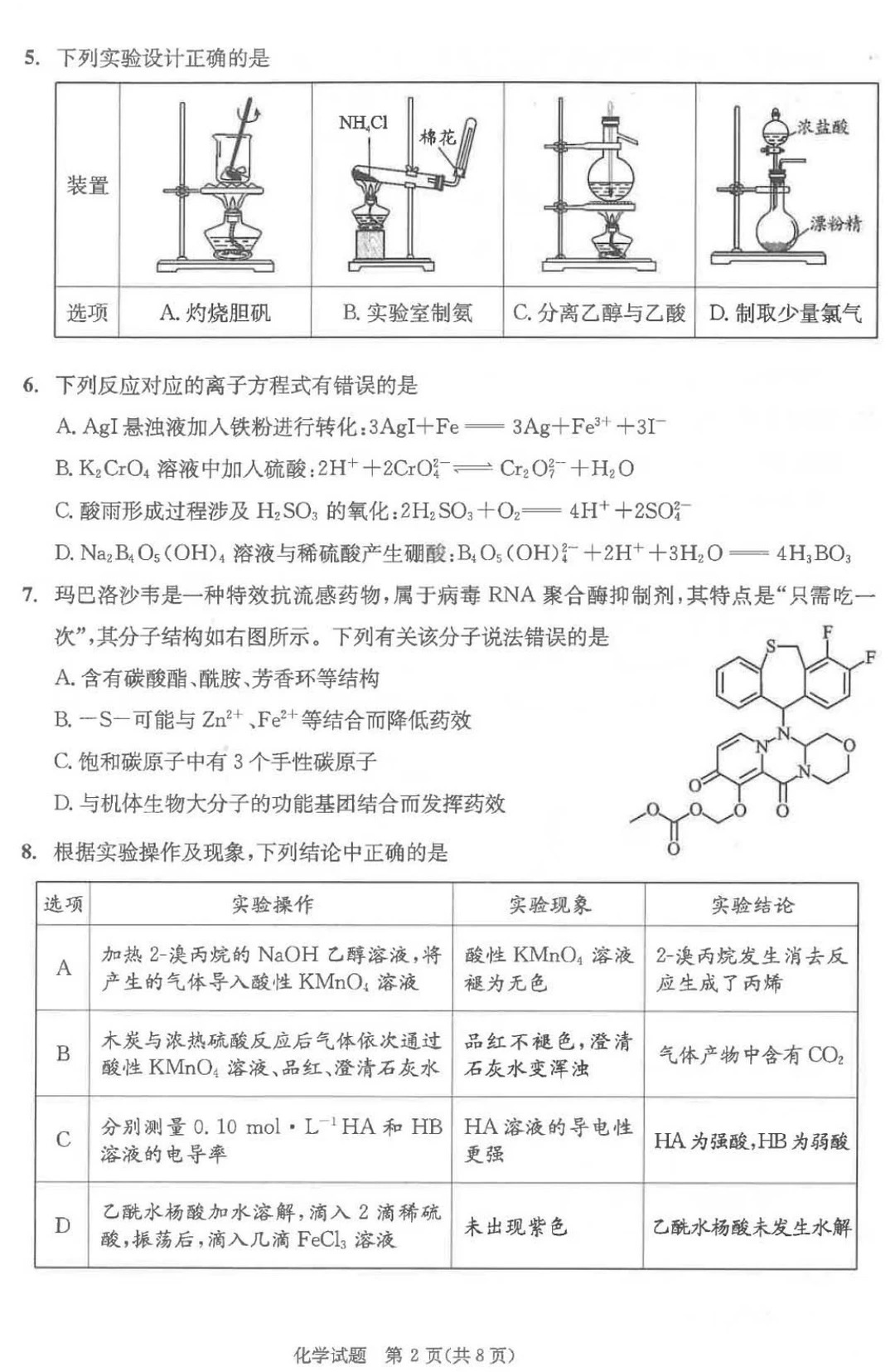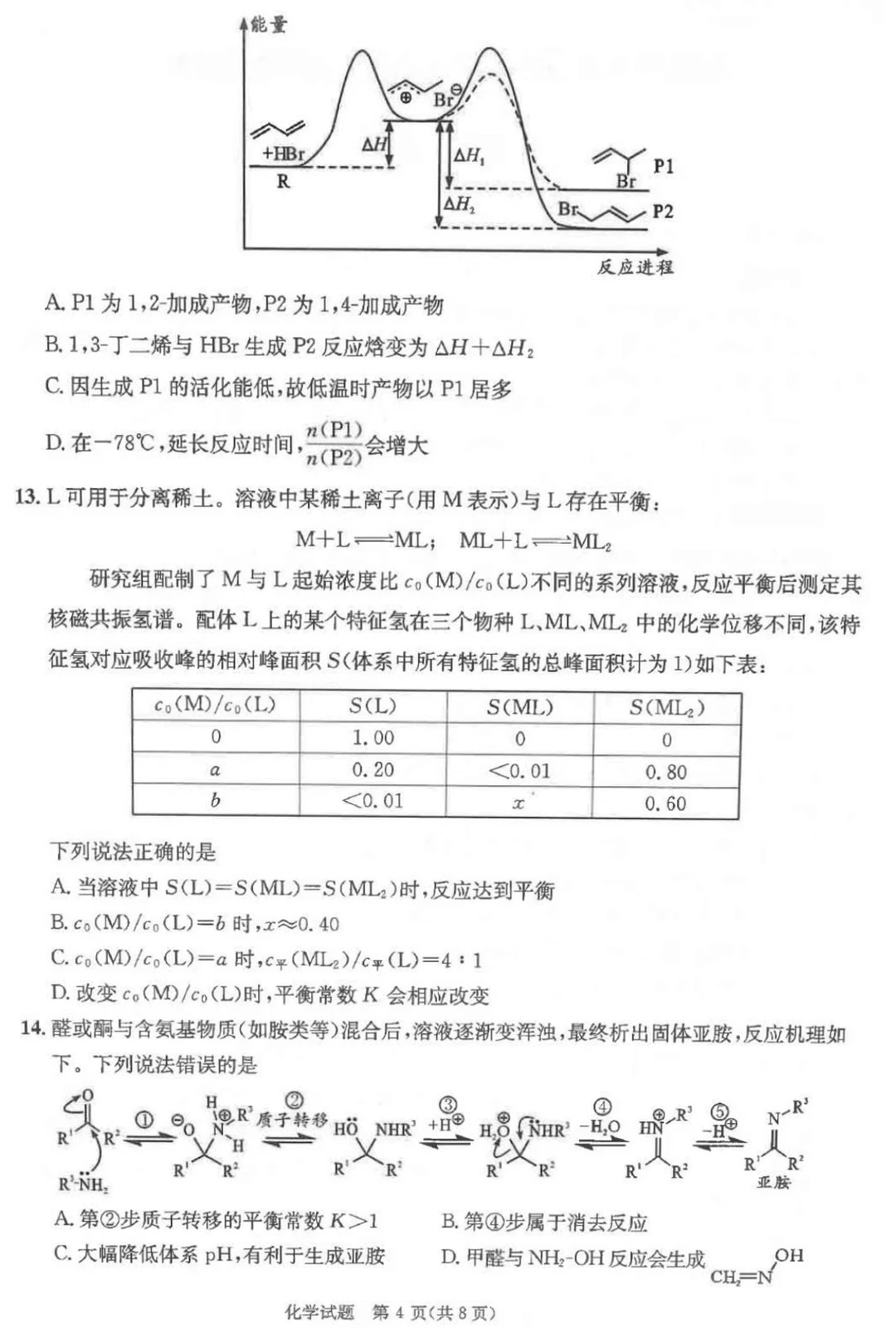 化学试卷解析:
