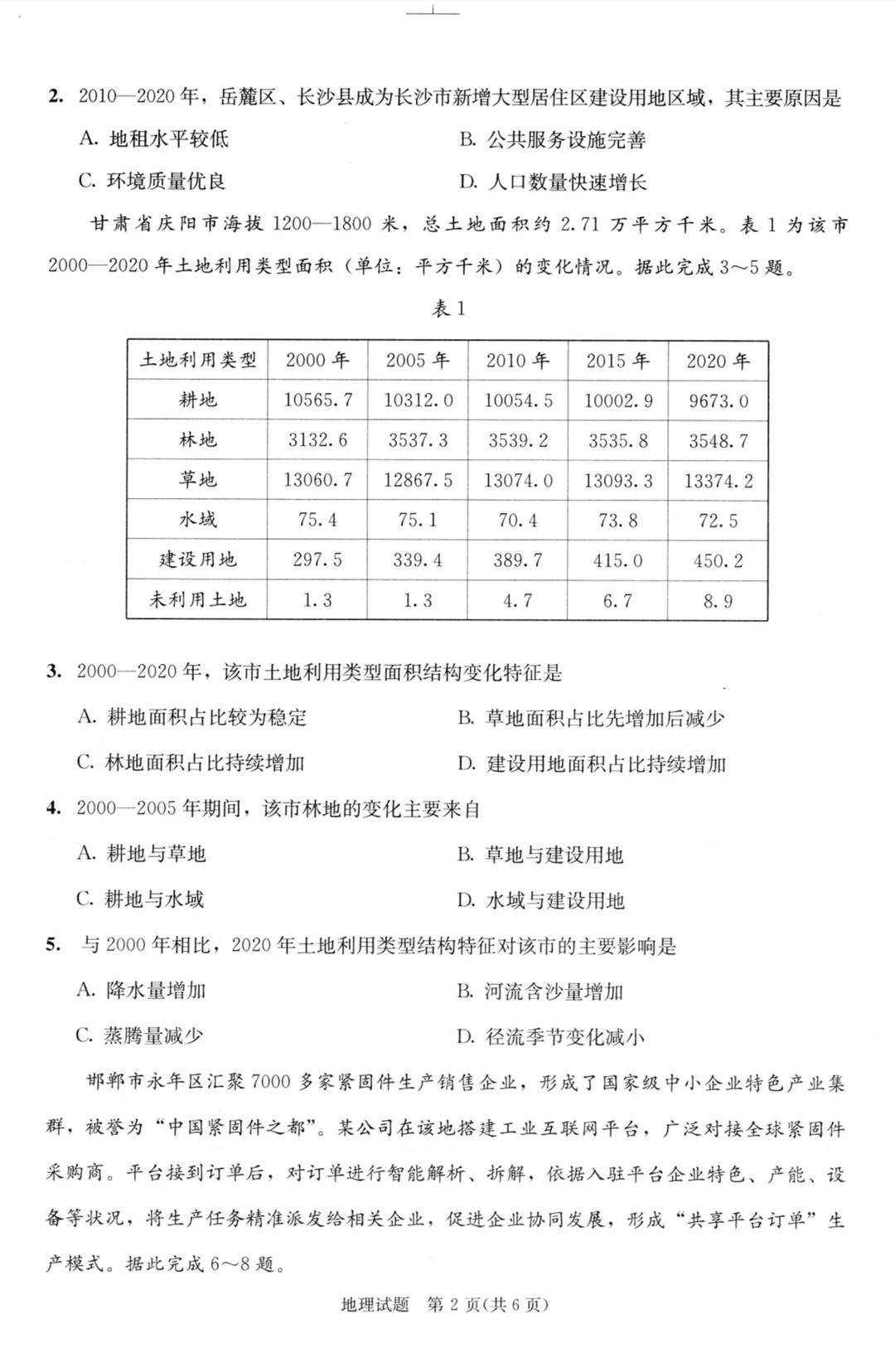 地理试卷解析: