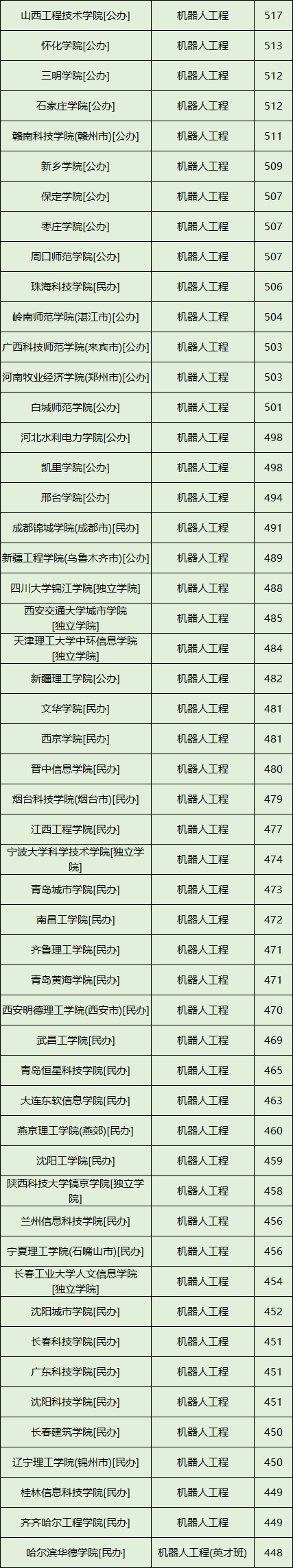 一、2024年各大学机器人工程专业分数线