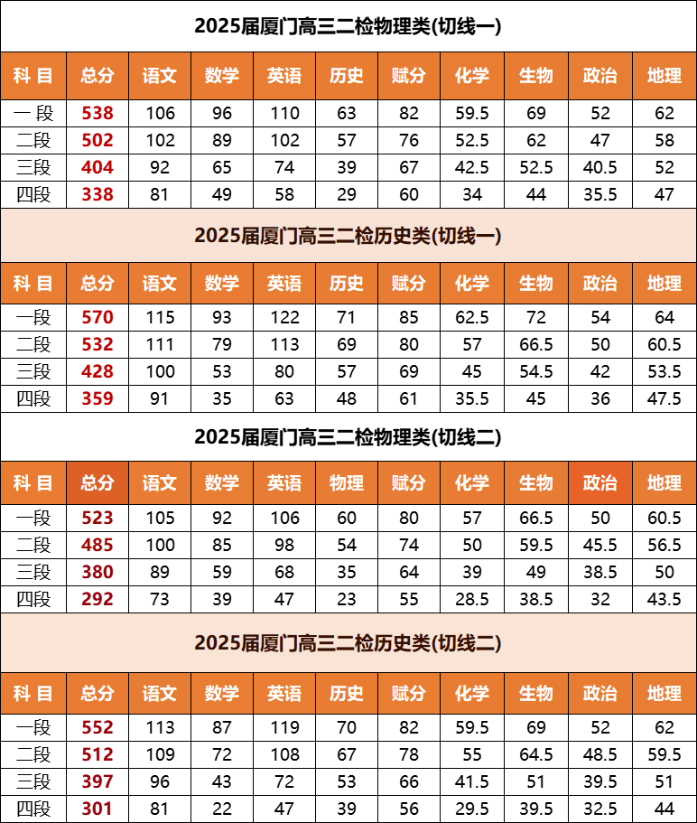 一、2025届福建厦门二检最新切线公布