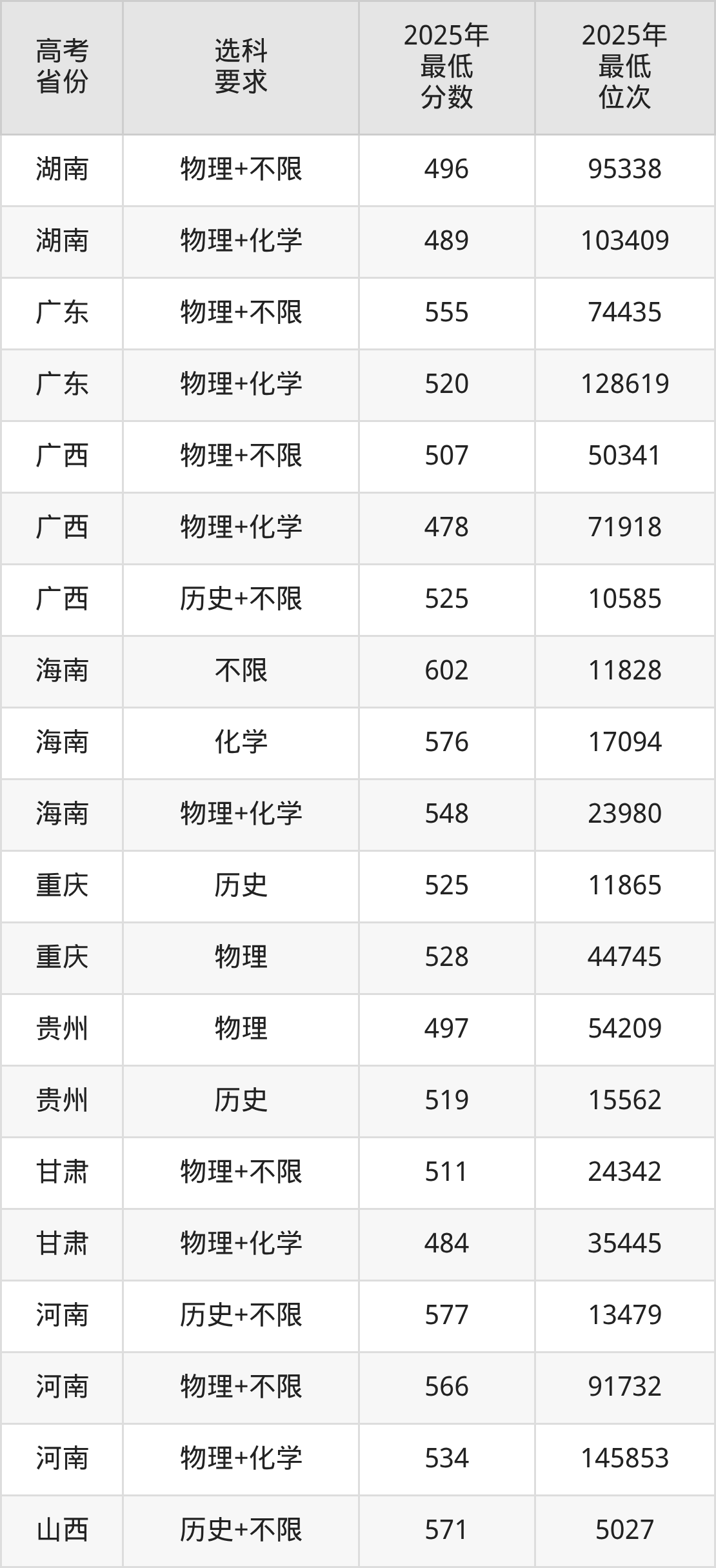 在2025年天津高考招生时,211收分最低的是石河子大学03组,最低分是557分、位次是23920位。再看云南中医药大学,2025年在天津的最低录取分数线是546分,最低位次是26966位。
