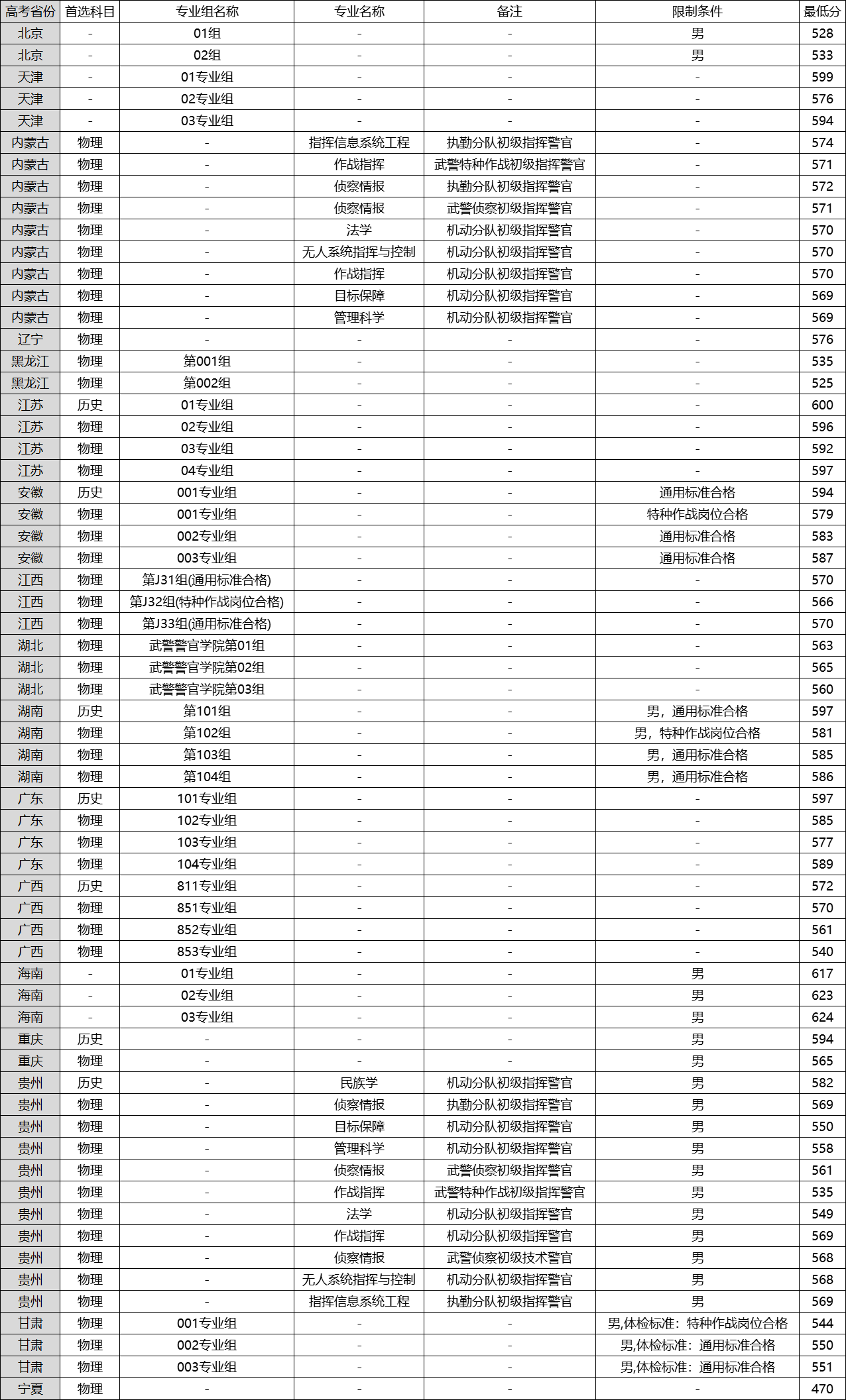 武警警官学院2025年在全国各省的录取分数线一览表具体如下: