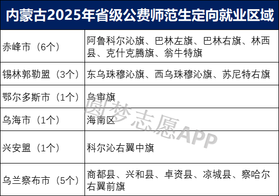以下为2025年内蒙古部属公费师范生履约任教区域整理,2026届考生在选择院校和专业时可重点参考。