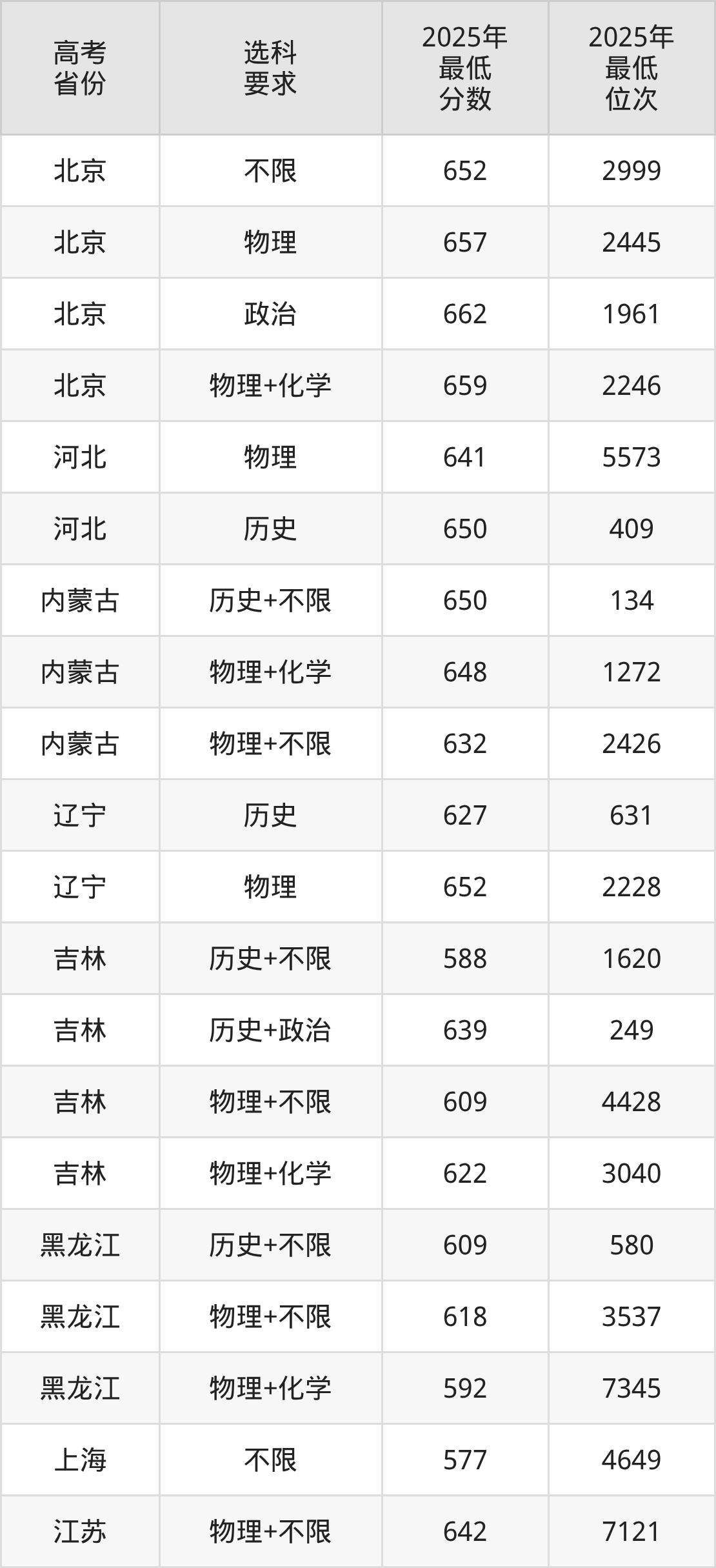 在2025年北京高考招生时,清华北大收分最低的是清华大学(02),最低分是685分、位次是461位。再看北京师范大学,2025年在北京的最低录取分数线是652分,最低位次是2999位。