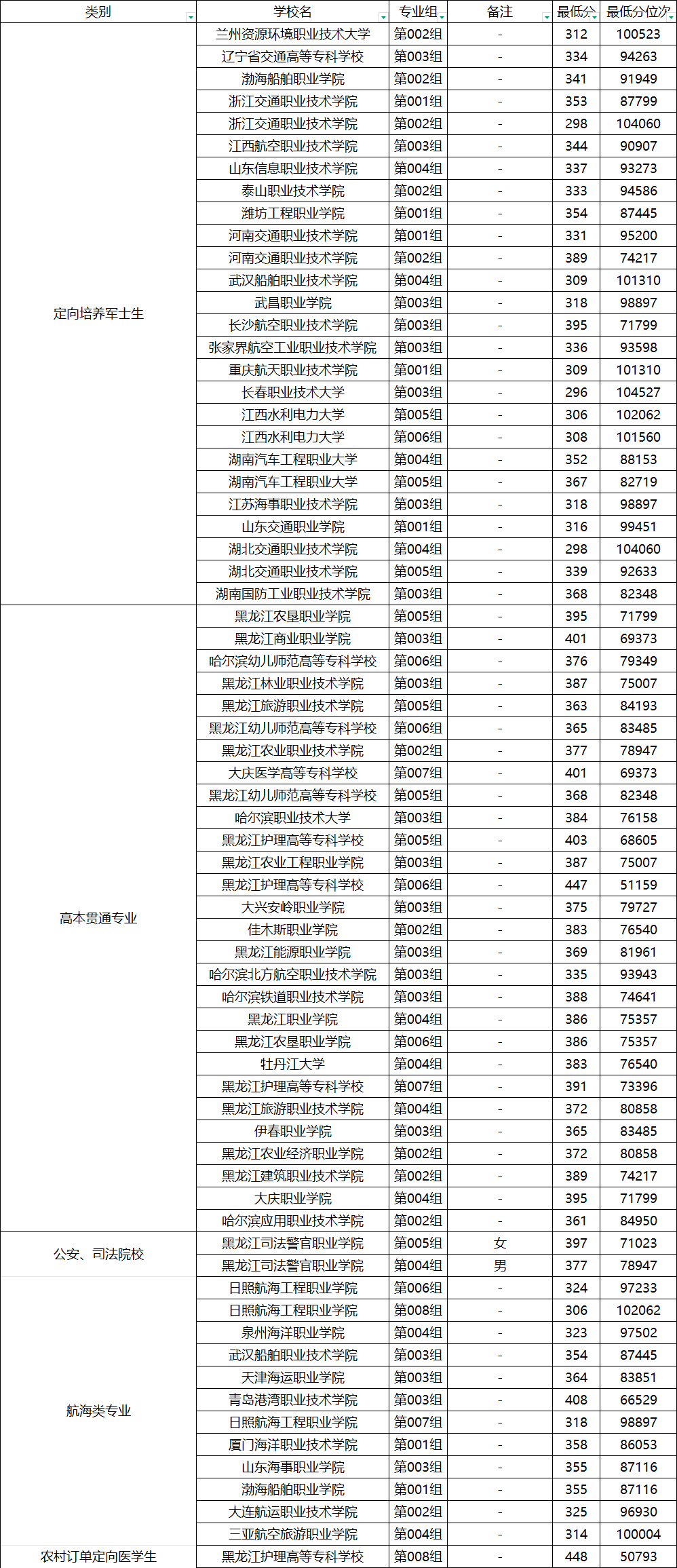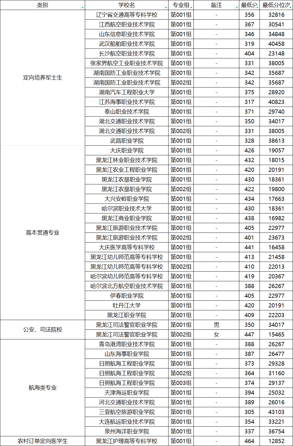 二、2025黑龙江高考专科提前批录取分数线(历史类)