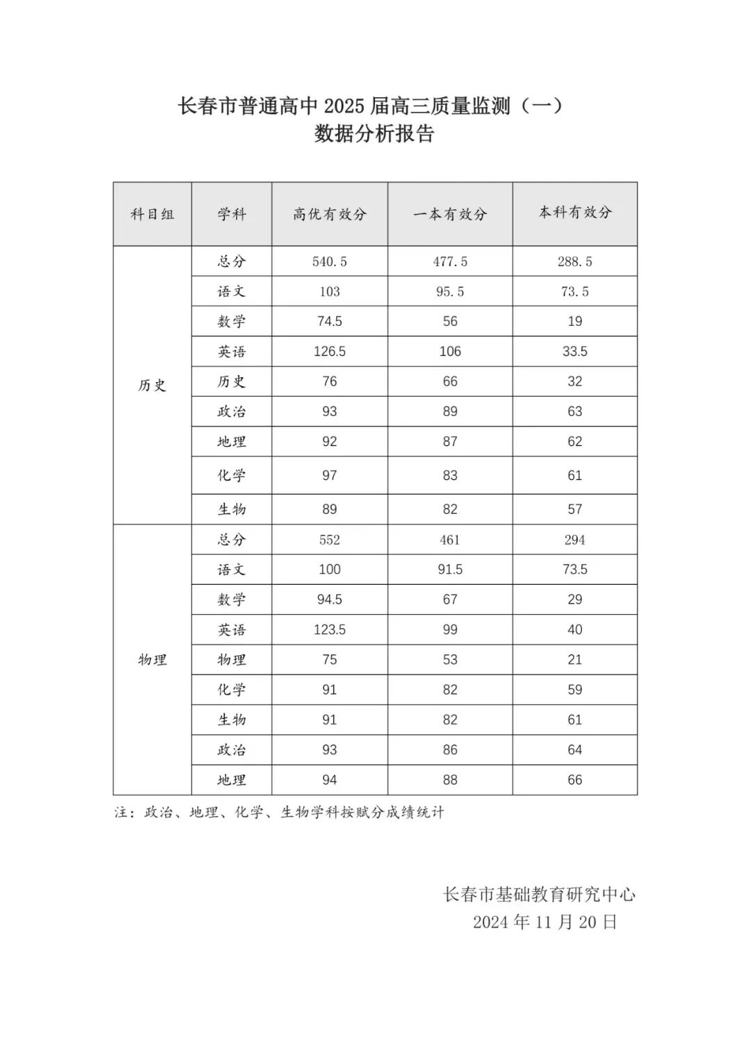 政治、地理、化学、生物等科目按赋分成绩统计,具体有效分可参考下表。