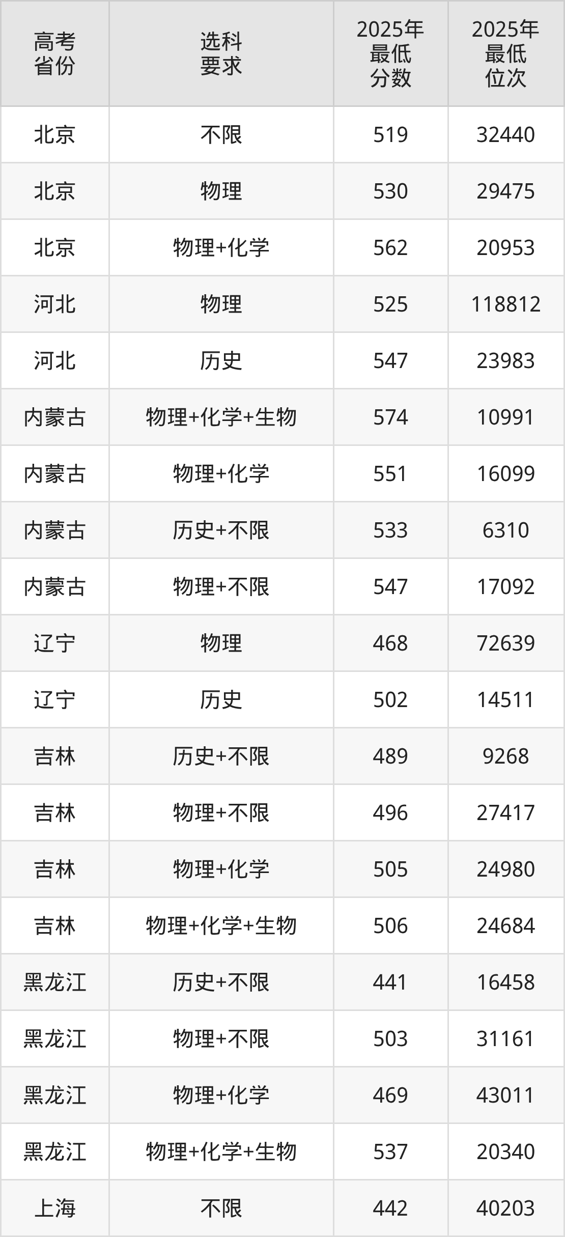 在2025年吉林高考物理类招生时,211收分最低的是延边大学第049组,最低分是387分、位次是58906位。再看长春理工大学,2025年在吉林物理类的最低录取分数线是496分,最低位次是27417位。