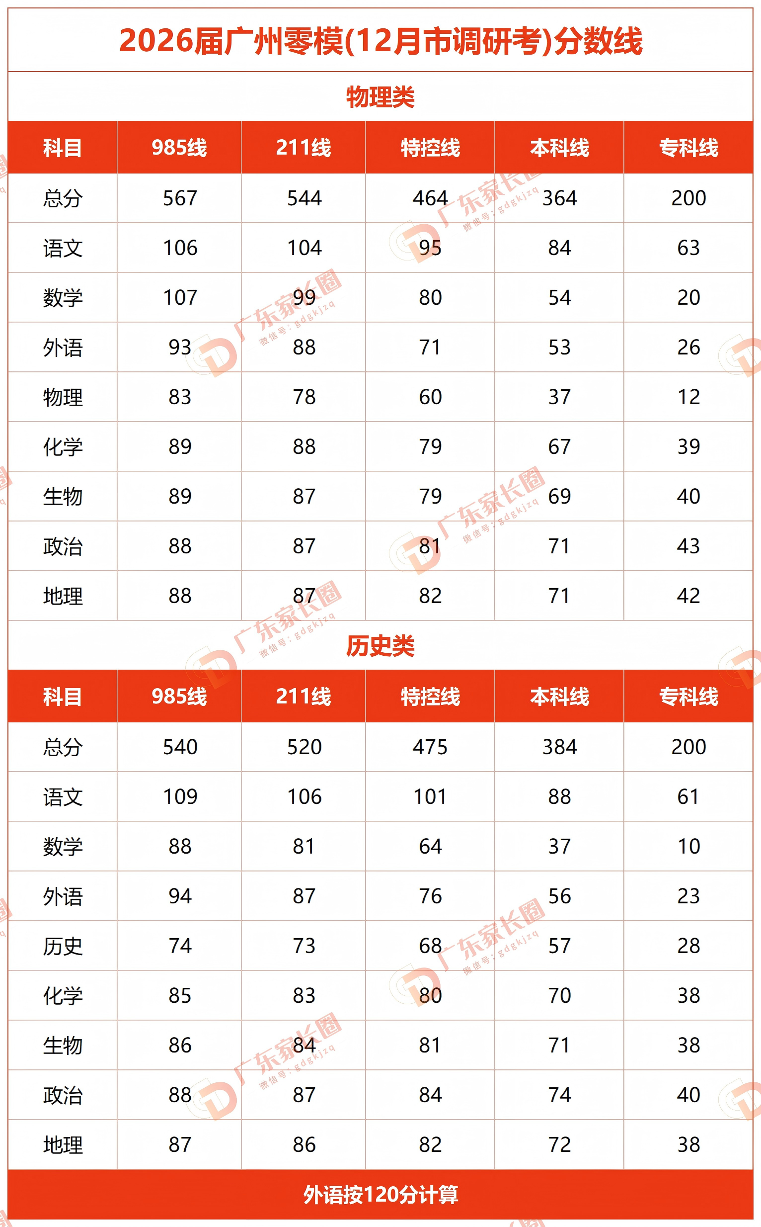 广州零模划线为物理类特控464分、历史类475分;物理本科364分、历史384分。以上为2026届广州零模官方划线。考生与家长可重点参考划线数据进行大致定位。