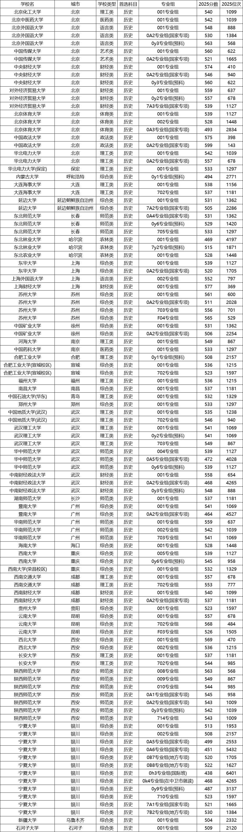历史类211高校中,最低分为宁夏大学“0h3专业组(国际班)”的438分。普通批次中,多数211高校的录取分数集中在530-580分之间。