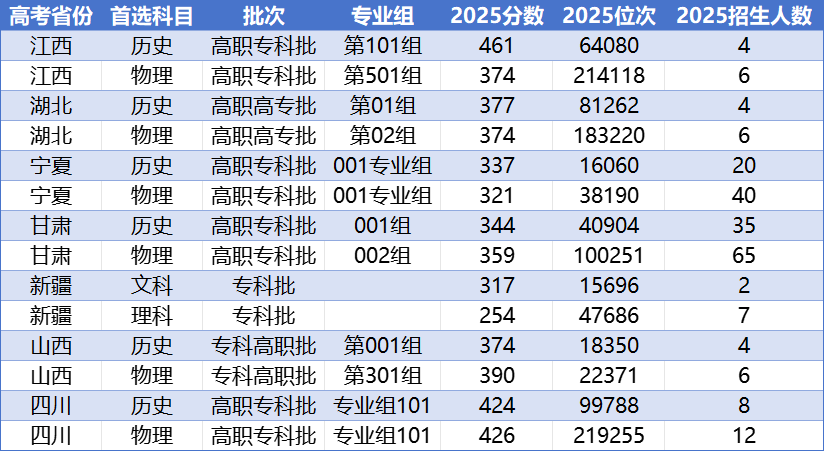 除了在陕西省内的招生,陕西农林职业技术大学2025年面向全国多个省份开展了专科层次招生工作。各省录取情况因地区、专业组别和选考要求的不同而呈现一定差异。