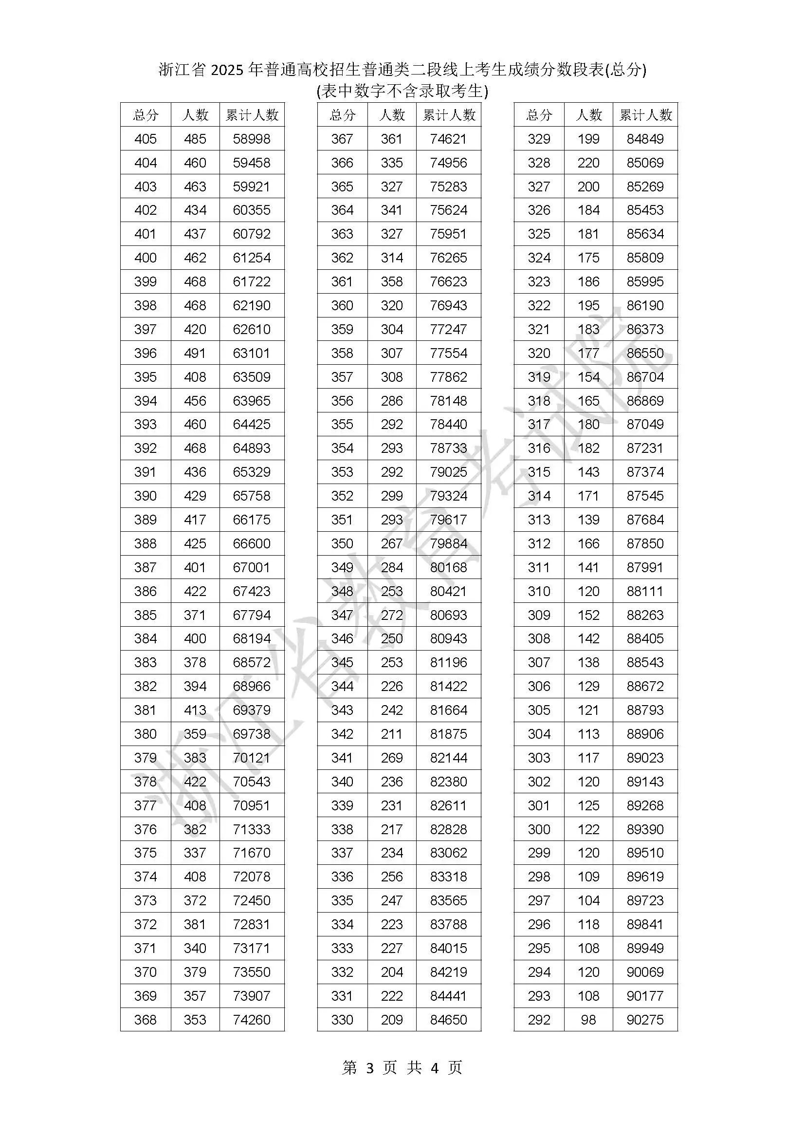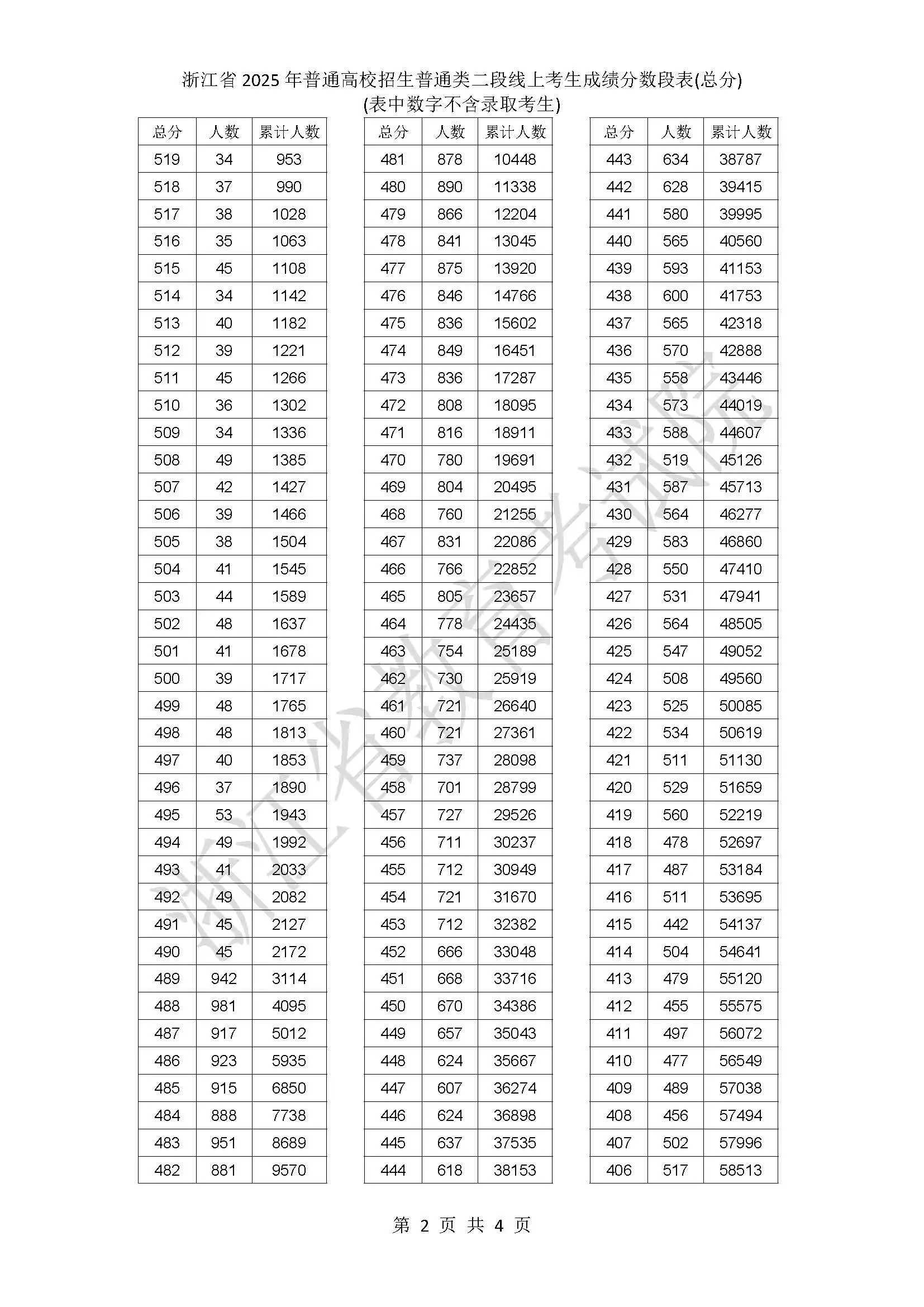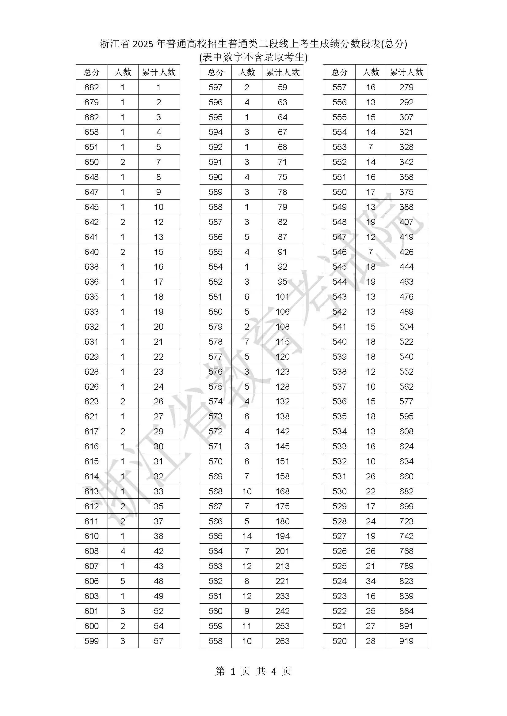 一、2025年浙江高考二段线上考生成绩一分一段表