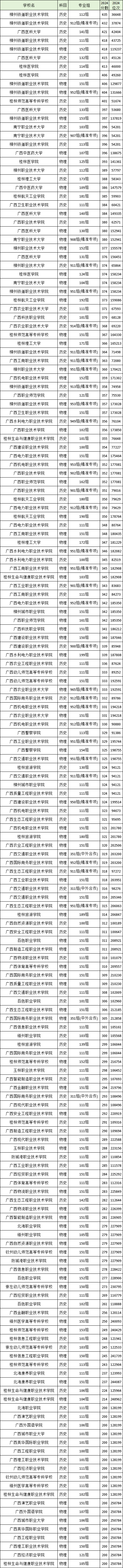 2024年广西本科各高校在广西的录取分数线及位次是:历史类388分-587分,2126名-58343名;物理类371分-622分,3220名-160890名。