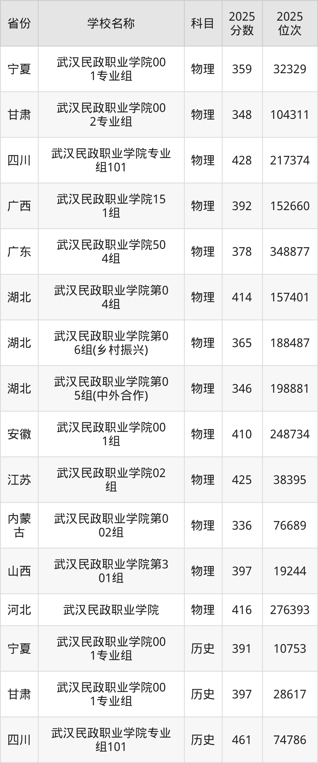 武汉民政职业学院2025年有3个专业组面向湖北省内首选了物理科目的考生招生: