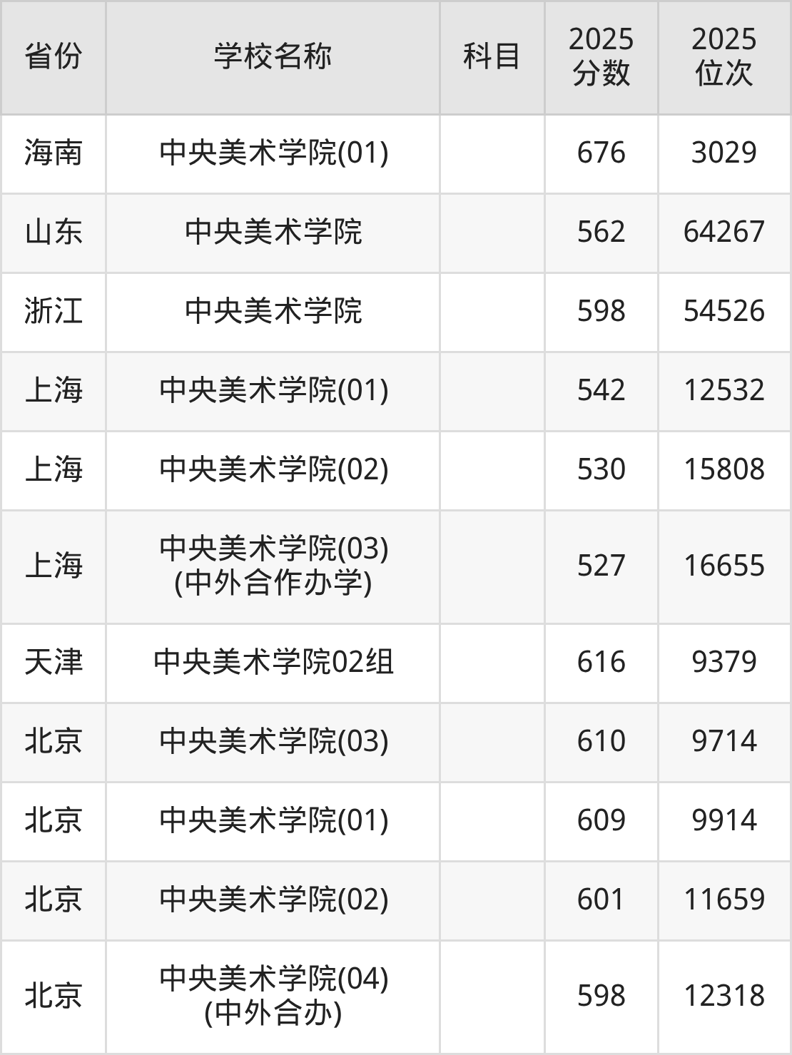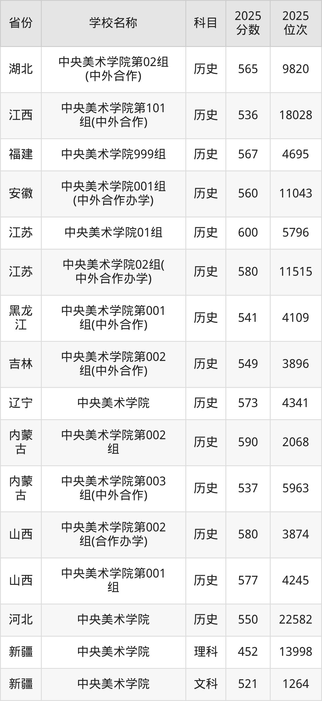 2025年中央美术学院在全国各省本科的最低录取分数线在452~676分之间。海南高考生最低676分能上中央美术学院、江苏物理类高考生最低619分能上中央美术学院……下文将展示中央美术学院在全国25个高考省份中的本科最低投档录取分汇总!