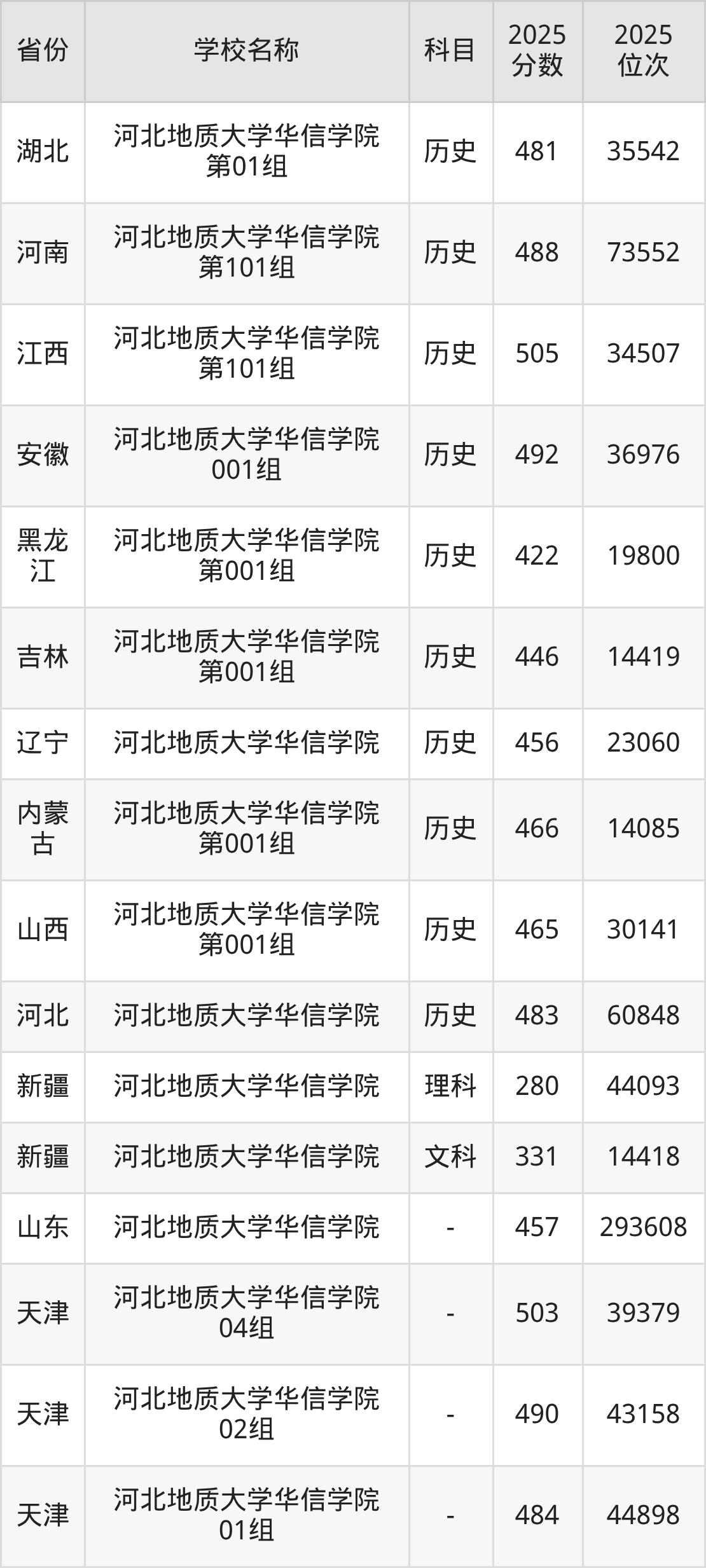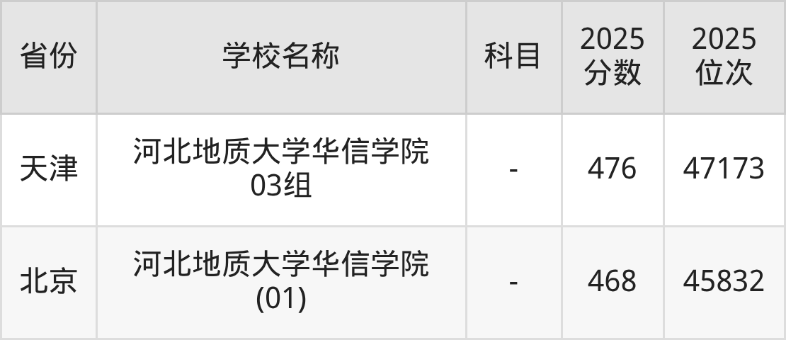 一、2025河北地质大学华信学院录取分数线