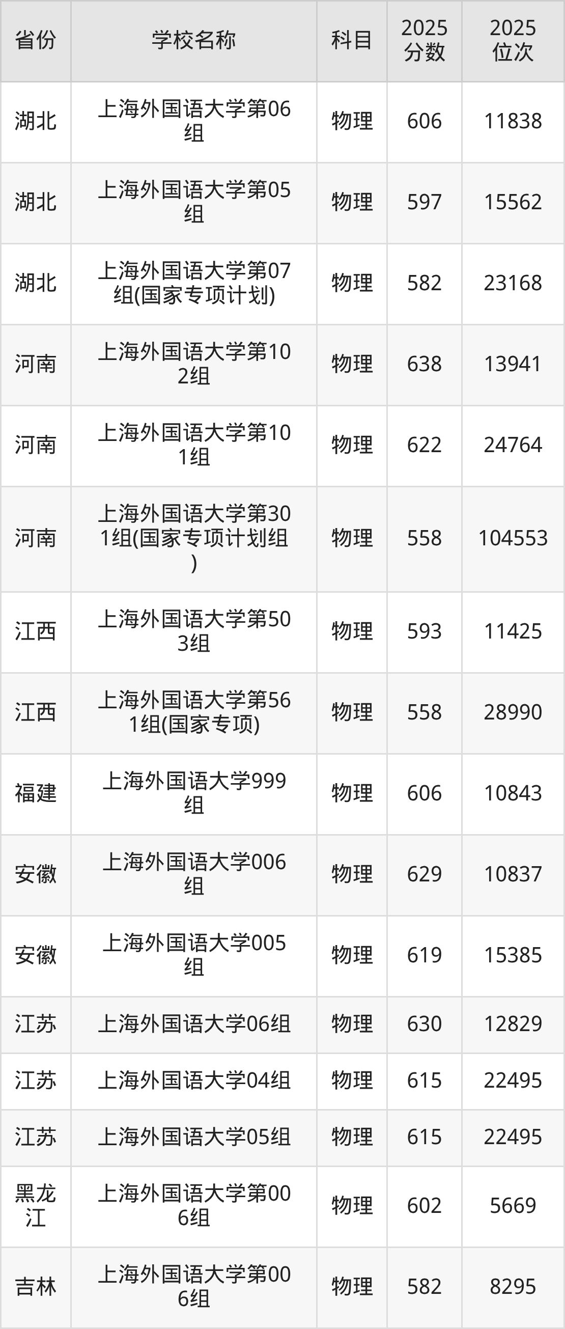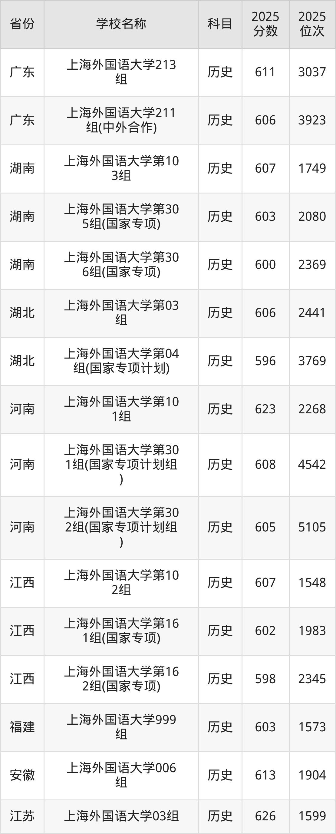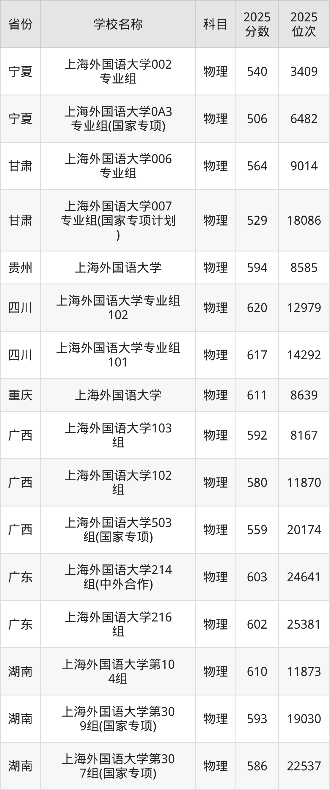 二、上海外国语大学各专业录取分数线