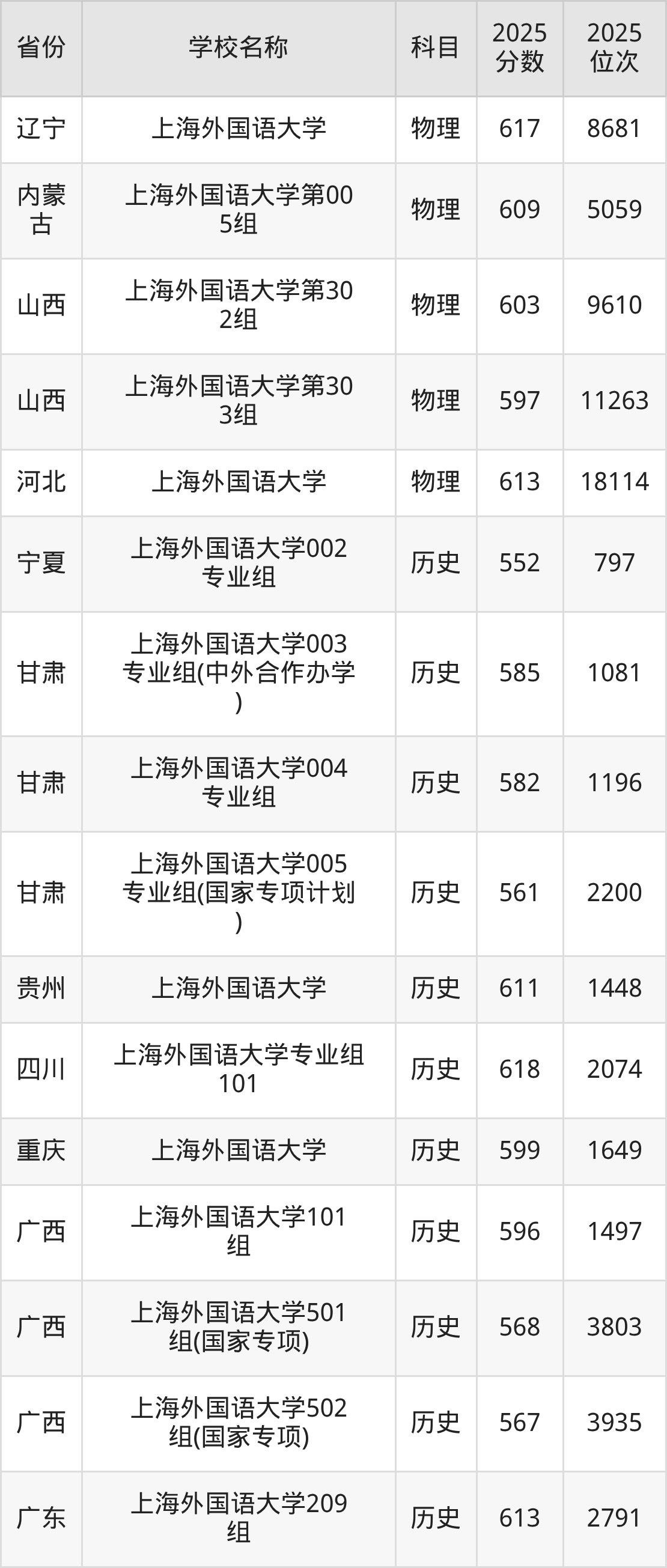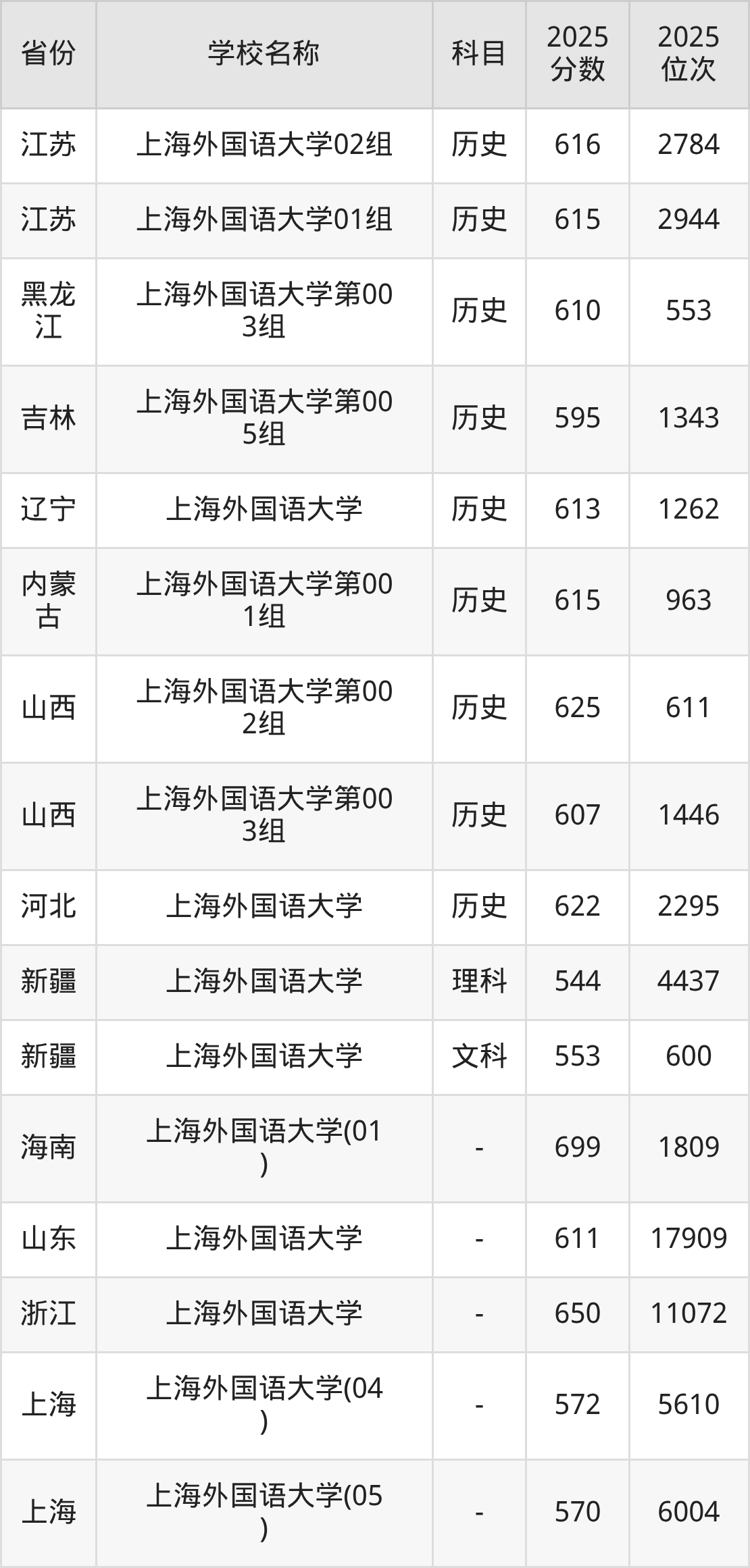一、2025上海外国语大学录取分数线