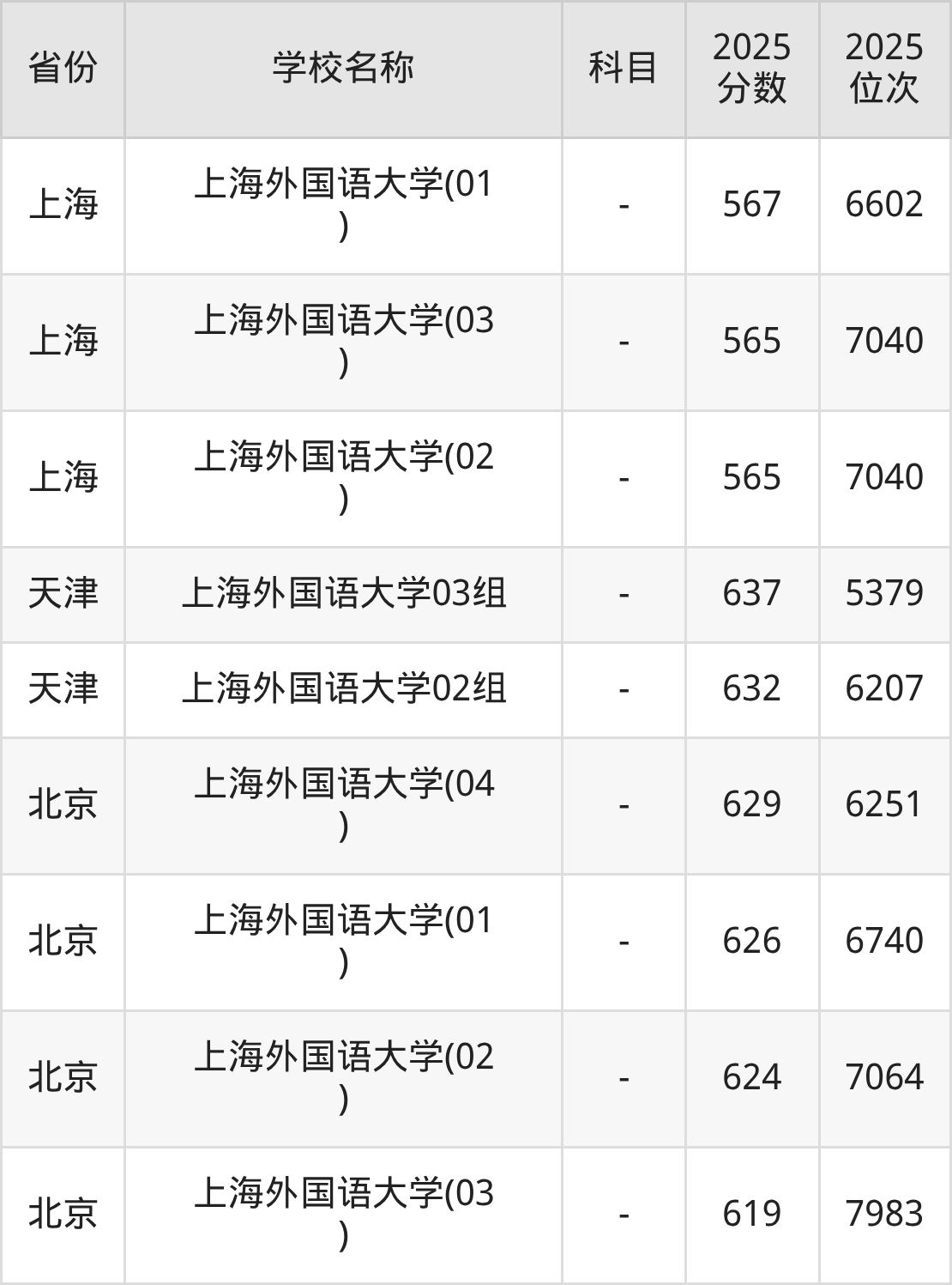 7、法语专业:2025年最低568分、最低位次是6379