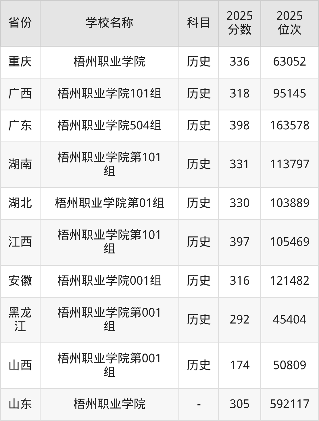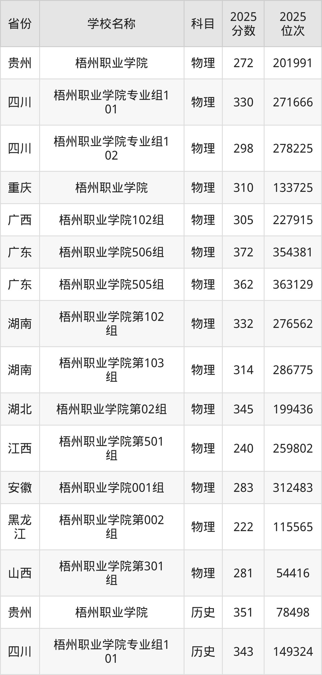 一、2025梧州职业学院录取分数线