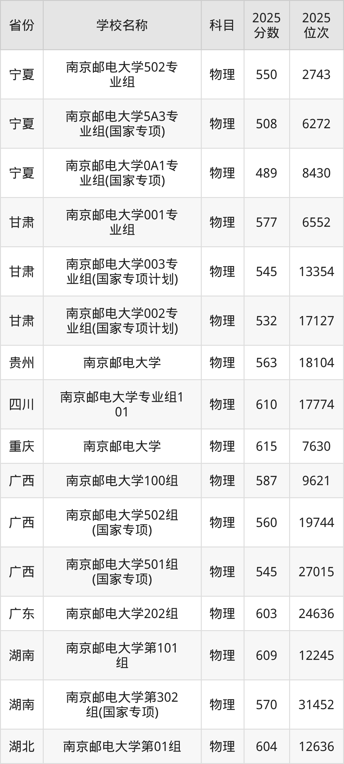 29、邮政工程专业:2025年最低604分、最低位次是30493