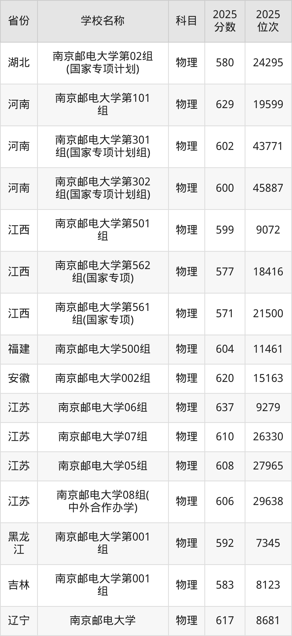 二、南京邮电大学各专业录取分数线