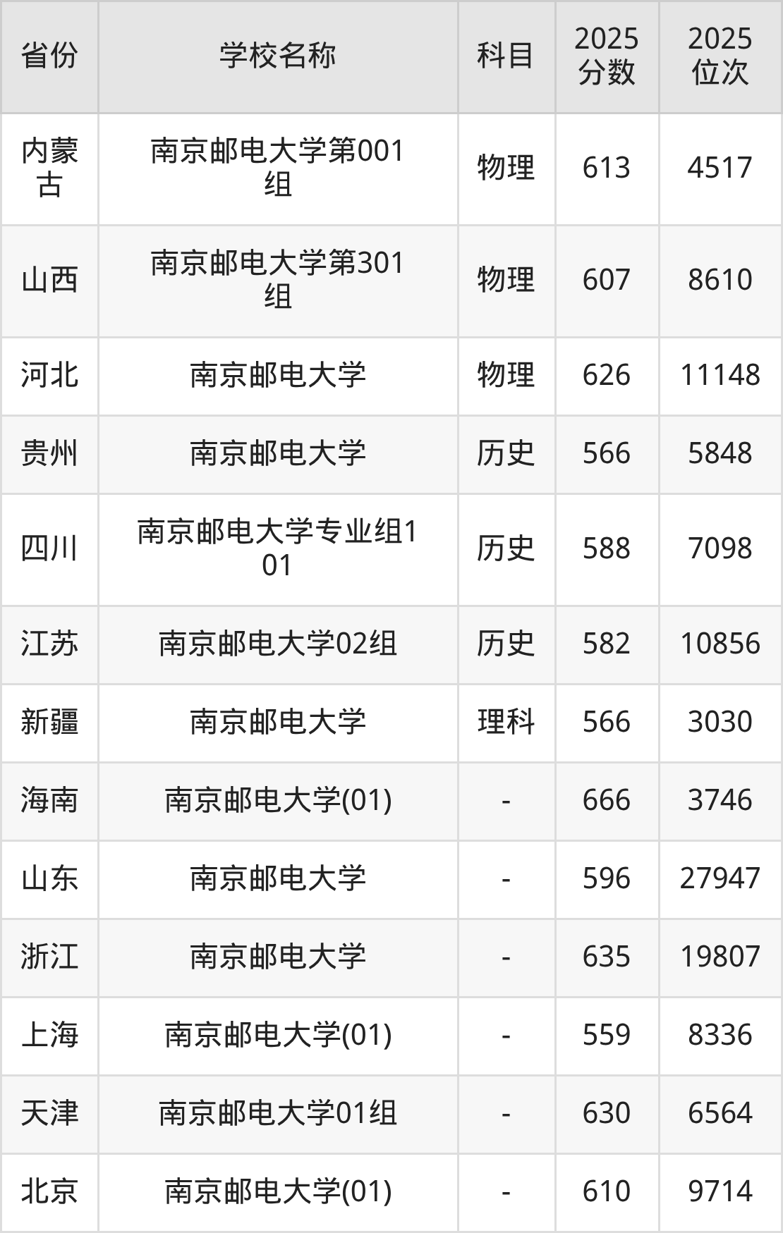 一、2025南京邮电大学录取分数线
