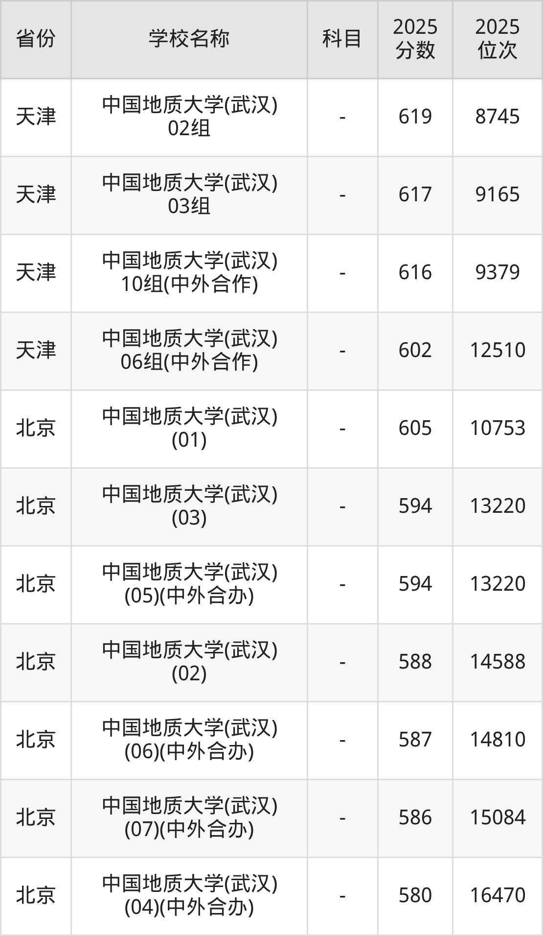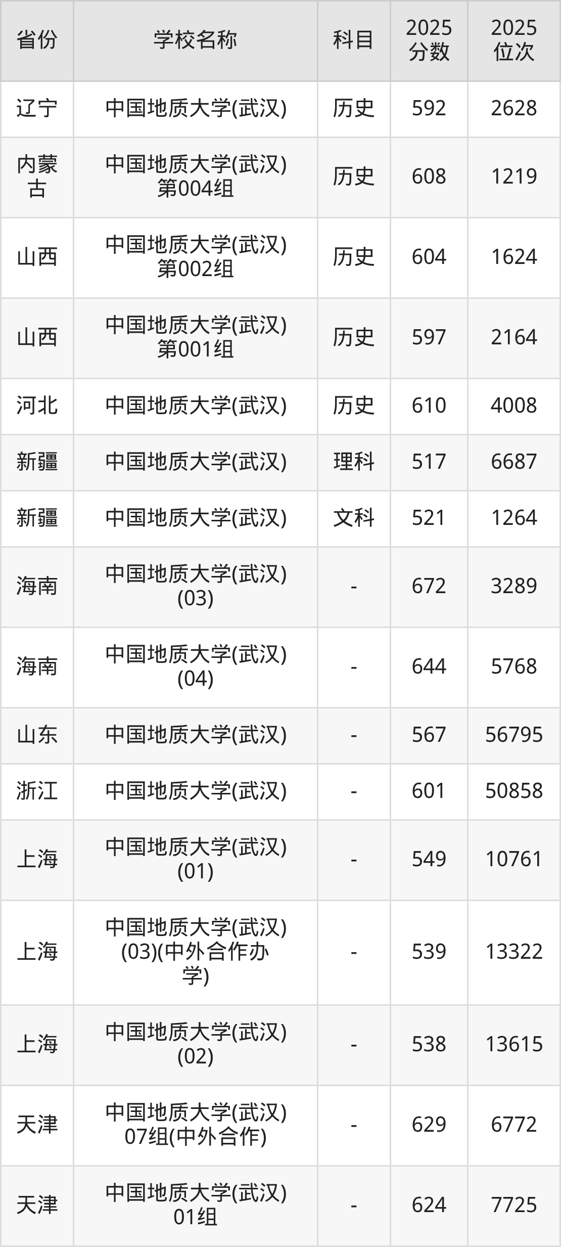 一、2025中国地质大学(武汉)录取分数线
