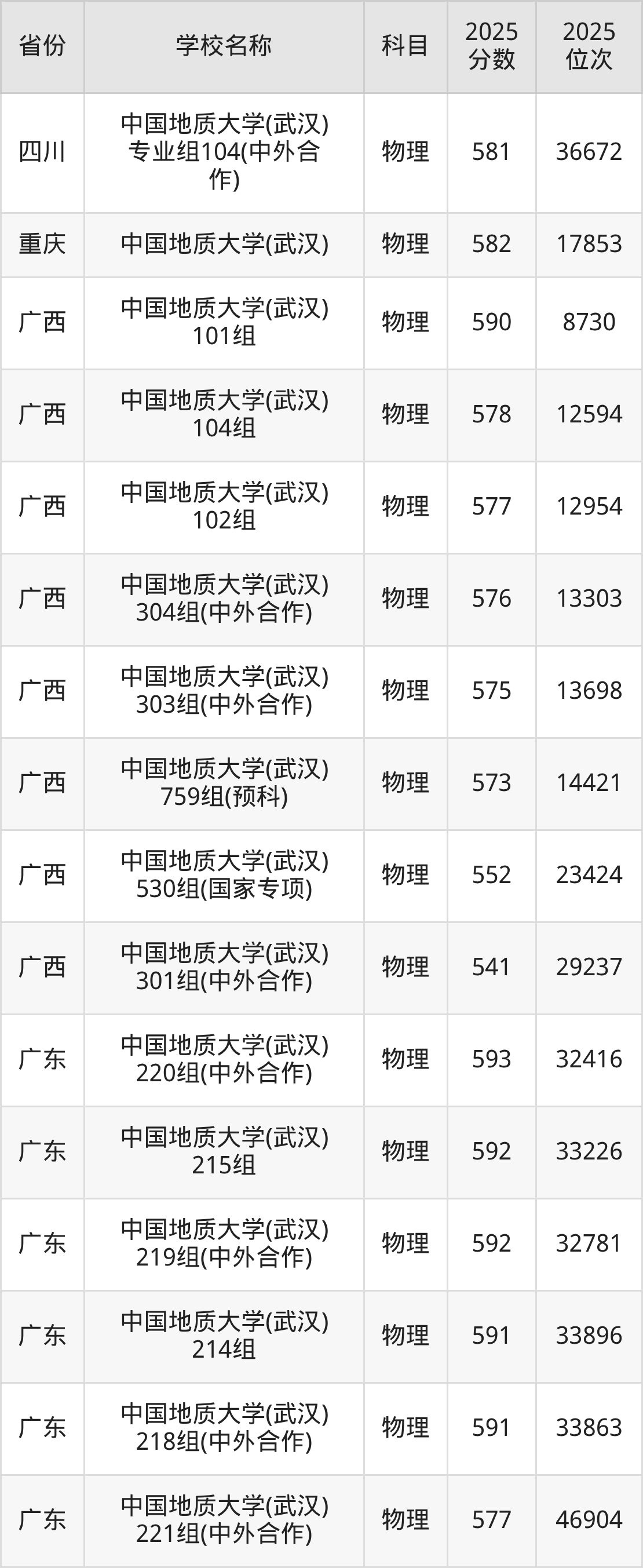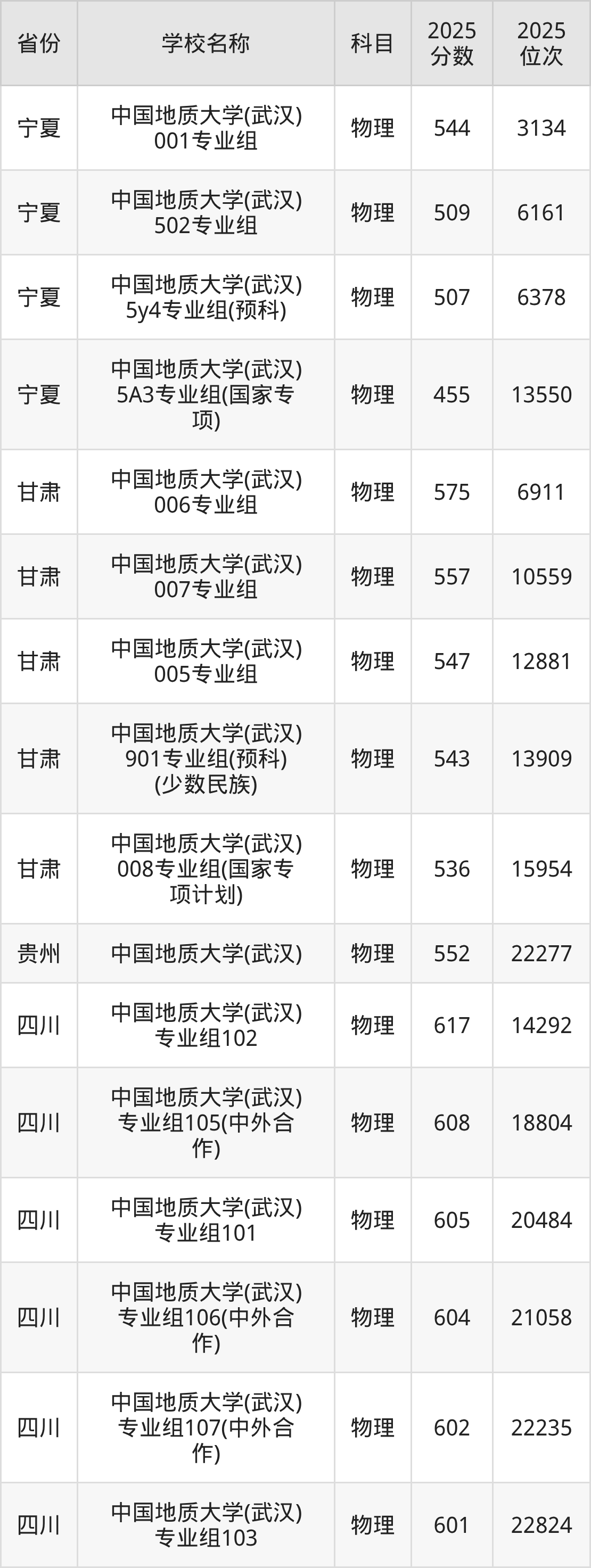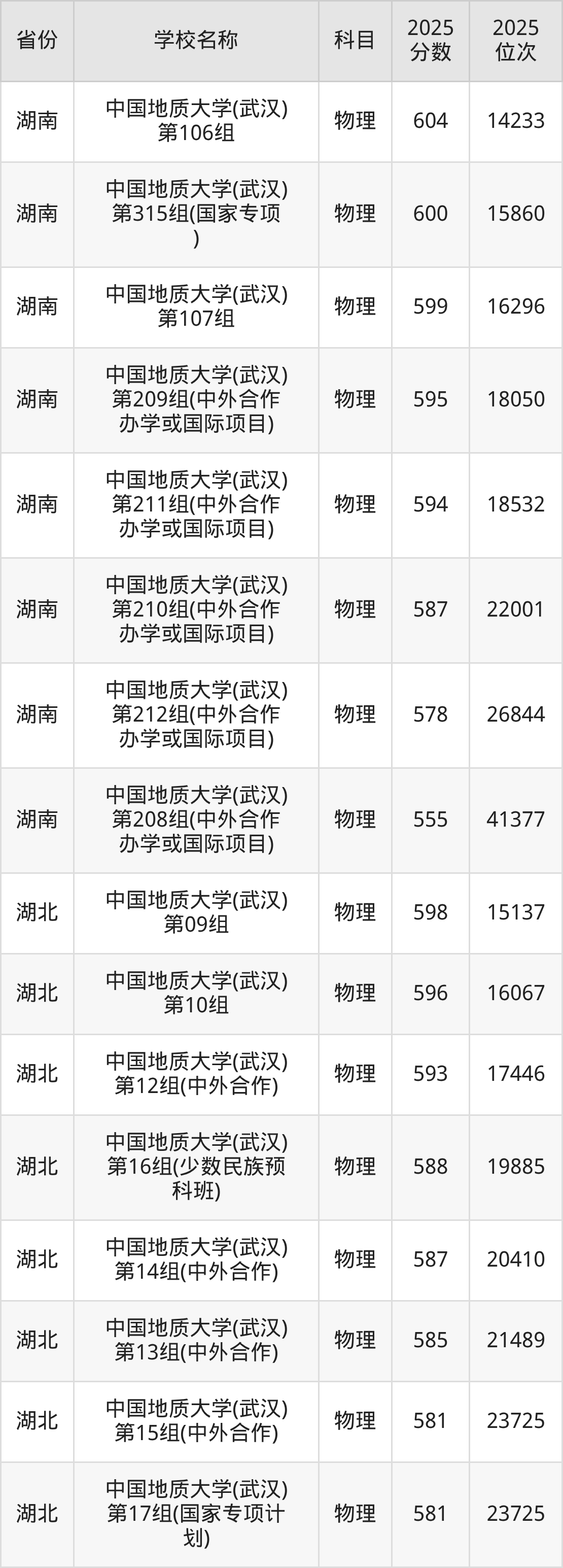 中国地质大学(武汉)2025年有9个专业组面向湖北省内首选了物理科目的考生招生:
