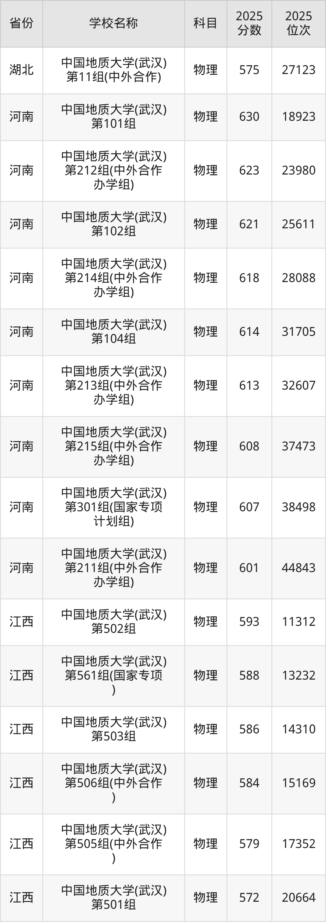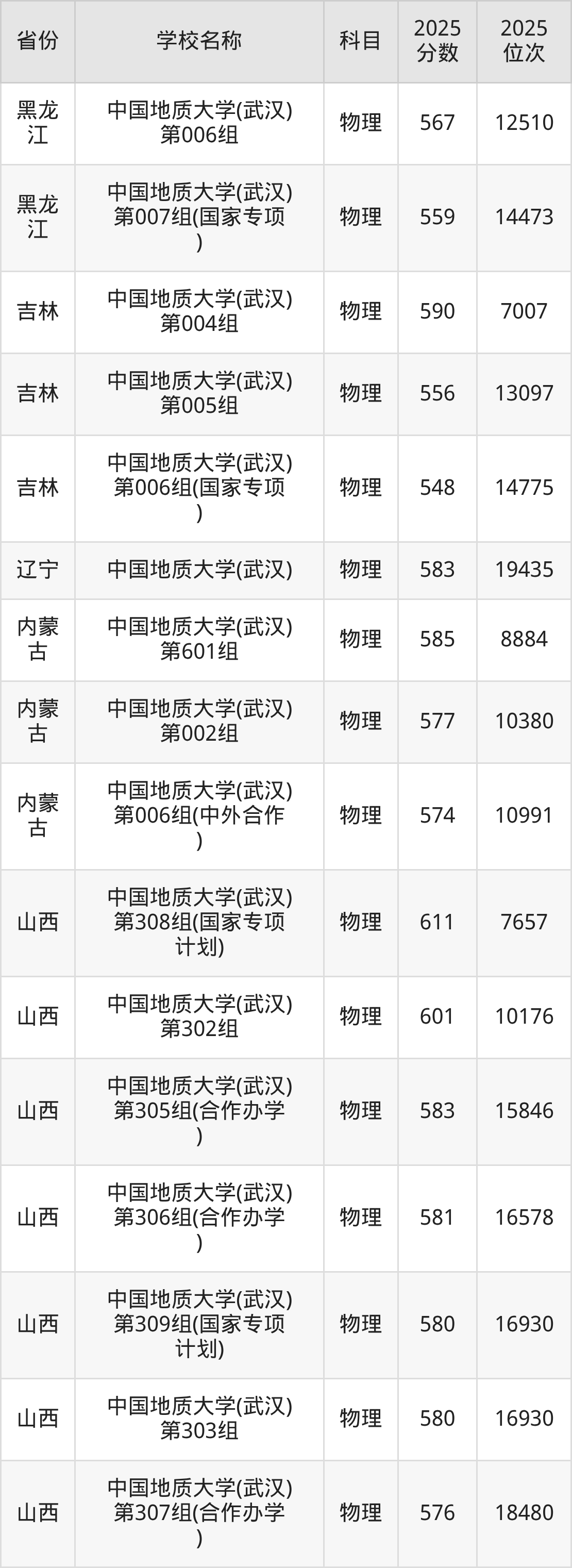 11、物理学专业:2025年最低611分、最低位次是19367