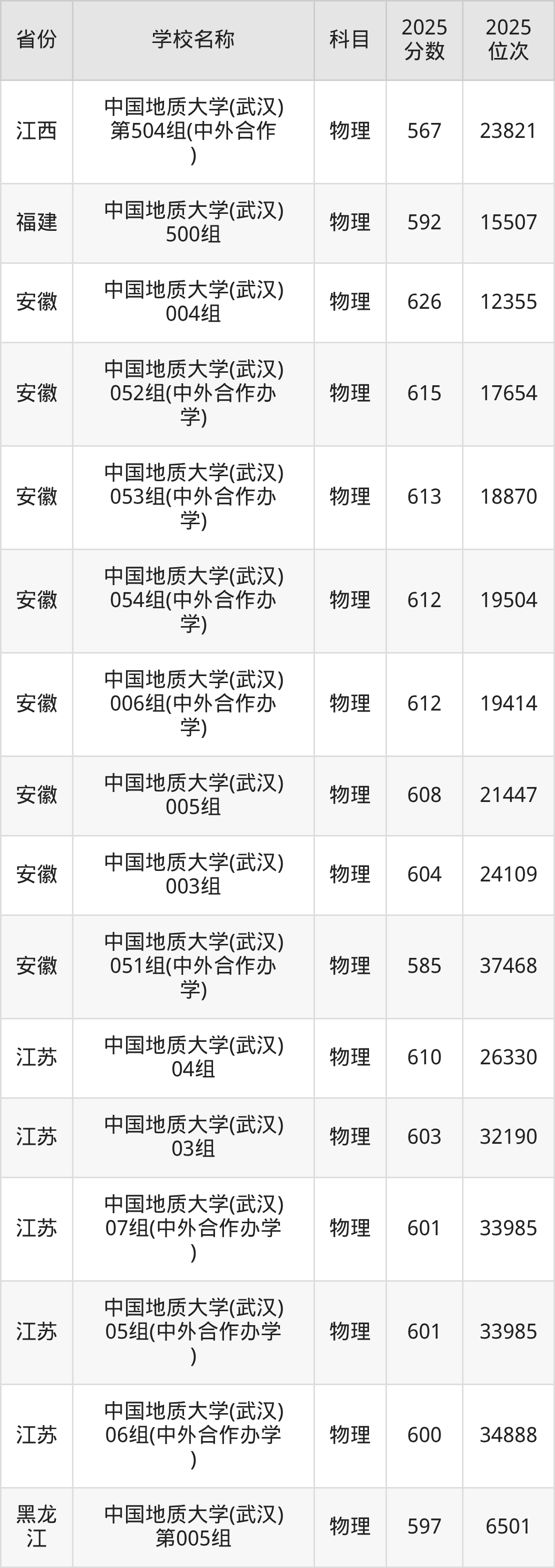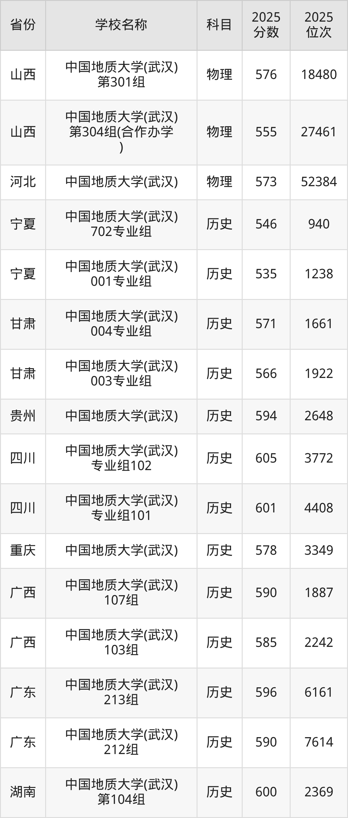 二、中国地质大学(武汉)各专业录取分数线
