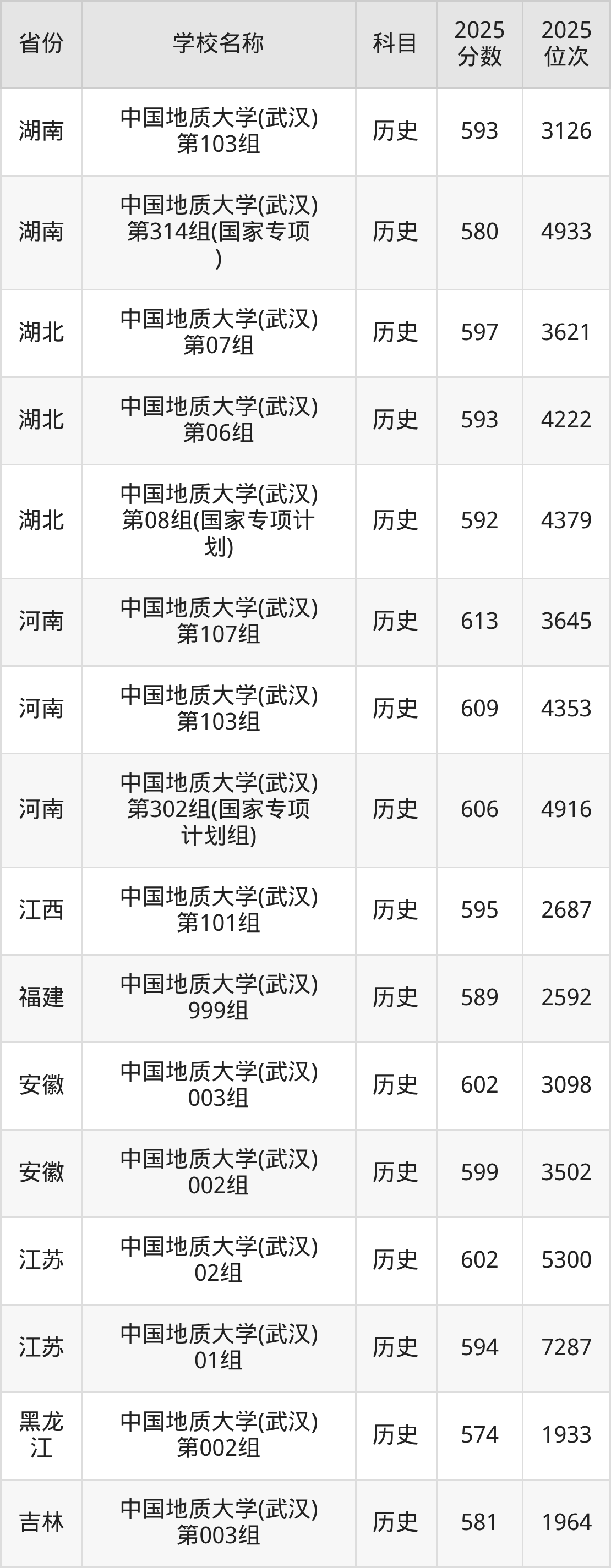 中国地质大学(武汉)2025年有3个专业组面向湖北省内首选了历史科目的考生招生: