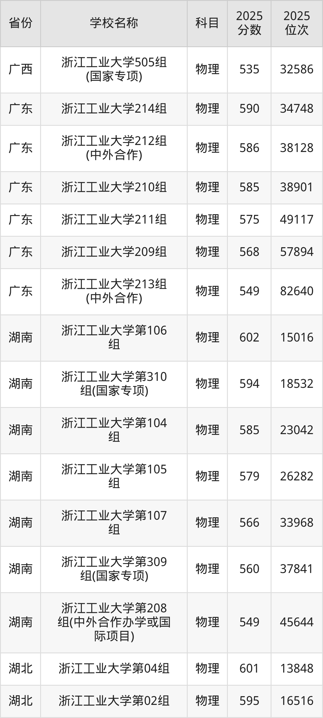25、物理学类专业:2025年最低619分、最低位次是32231
