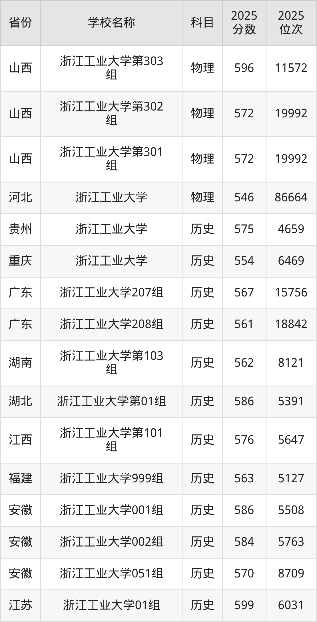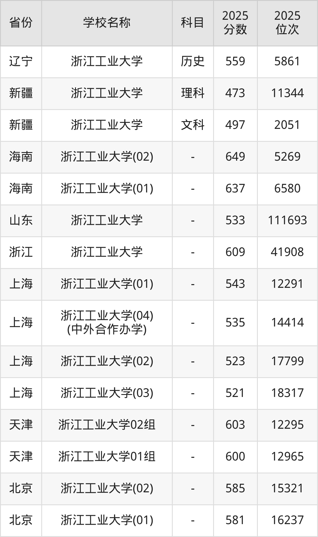 一、2025浙江工业大学录取分数线