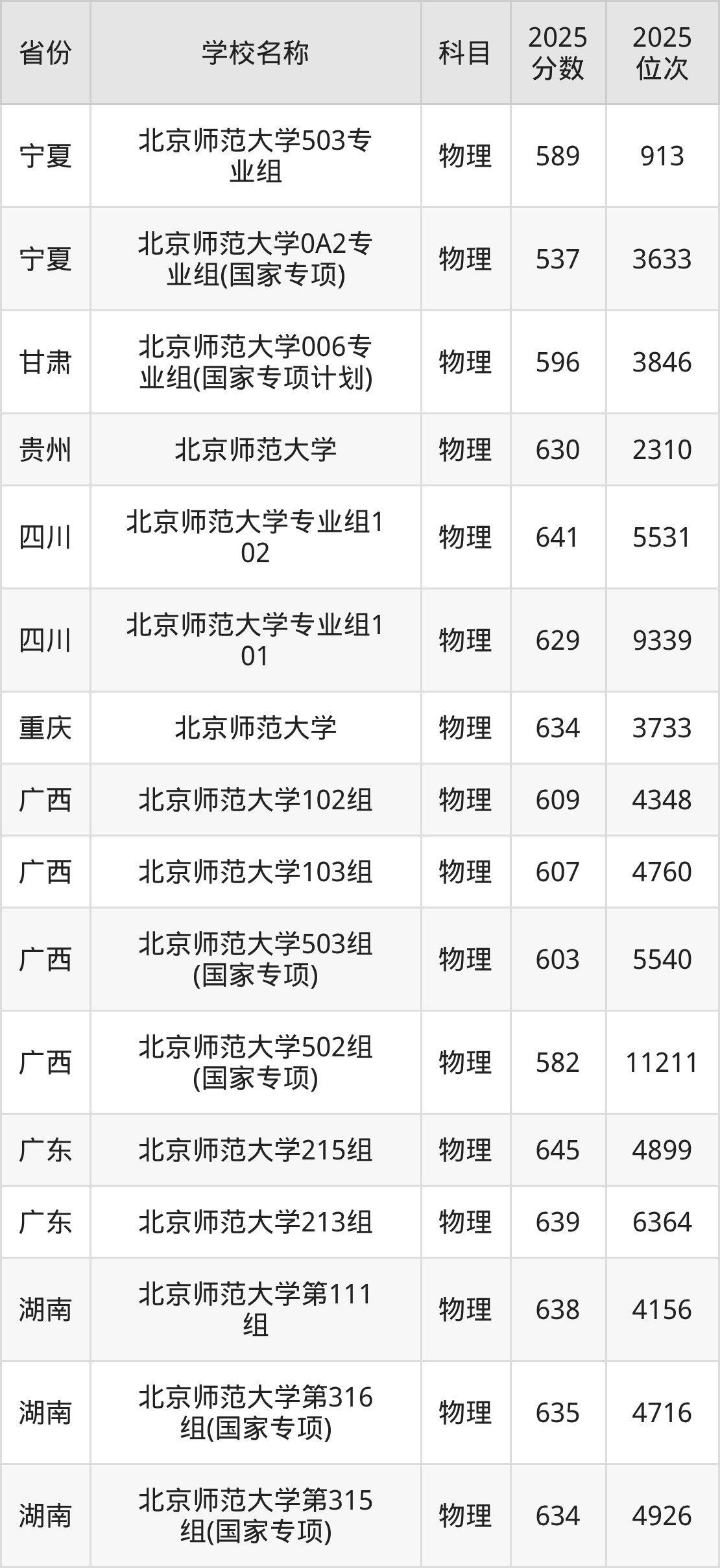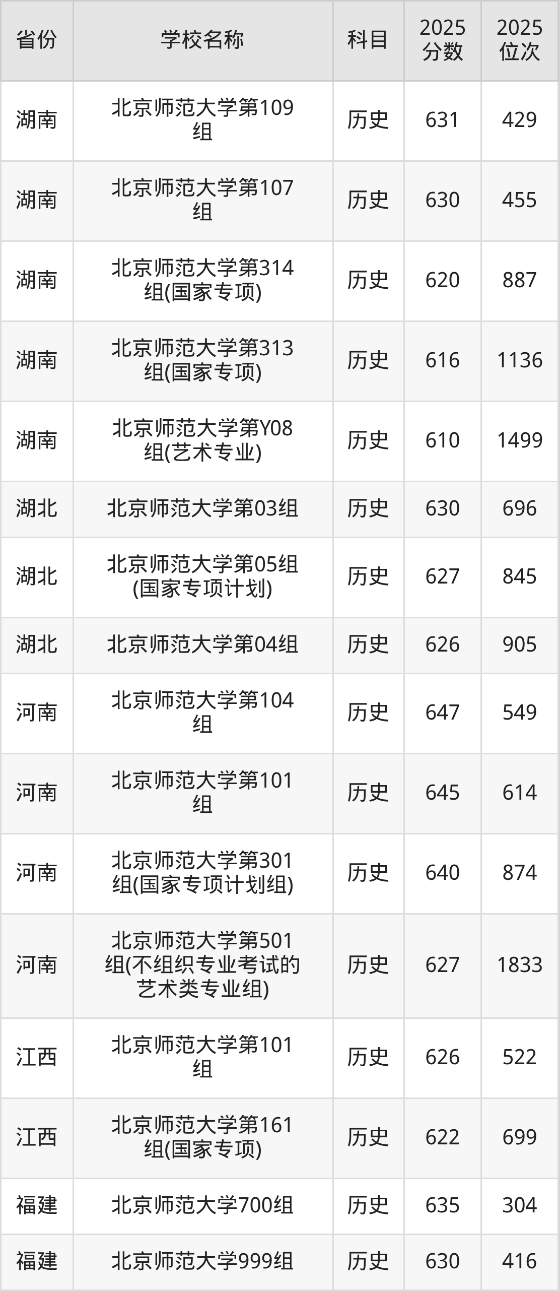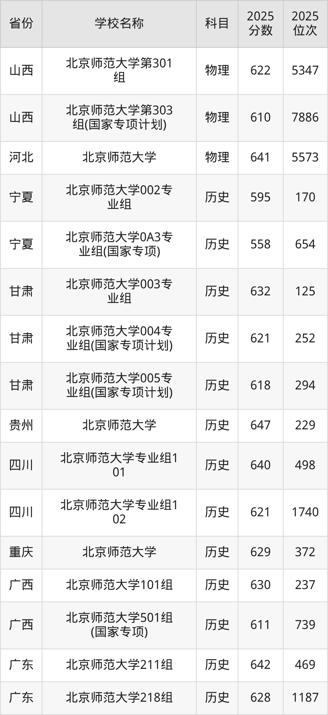 二、北京师范大学各专业录取分数线