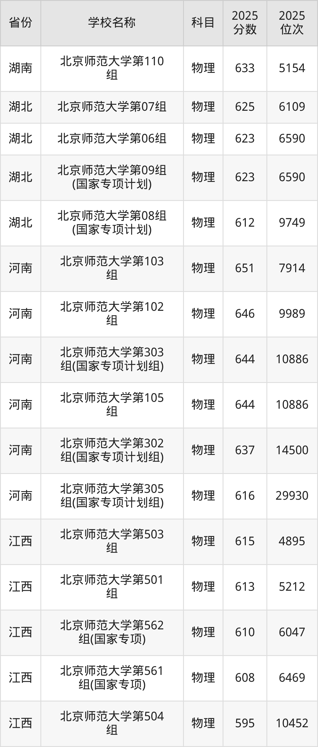 6、物理学类专业:2025年最低636分、最低位次是3186