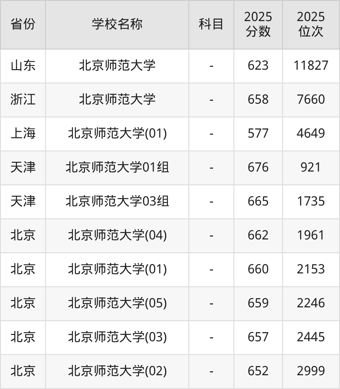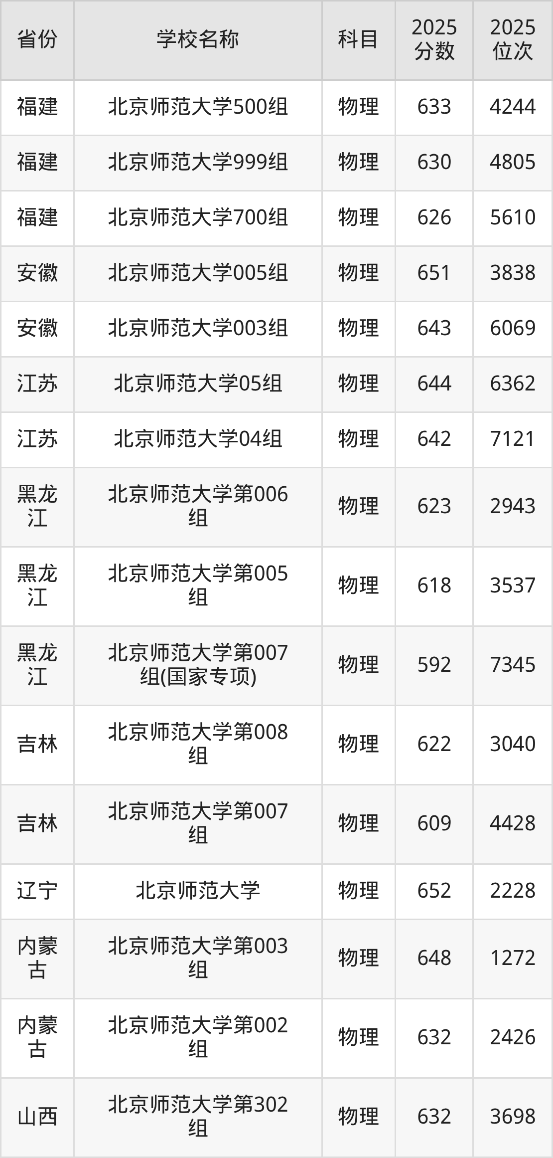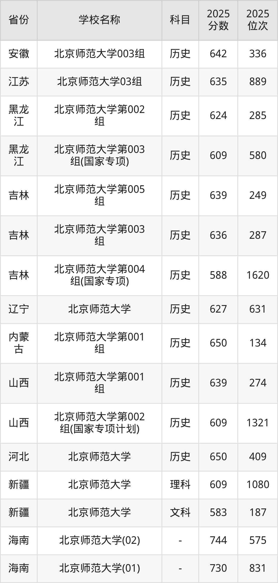 一、2025北京师范大学录取分数线